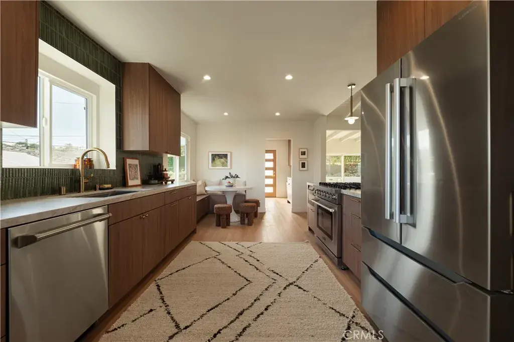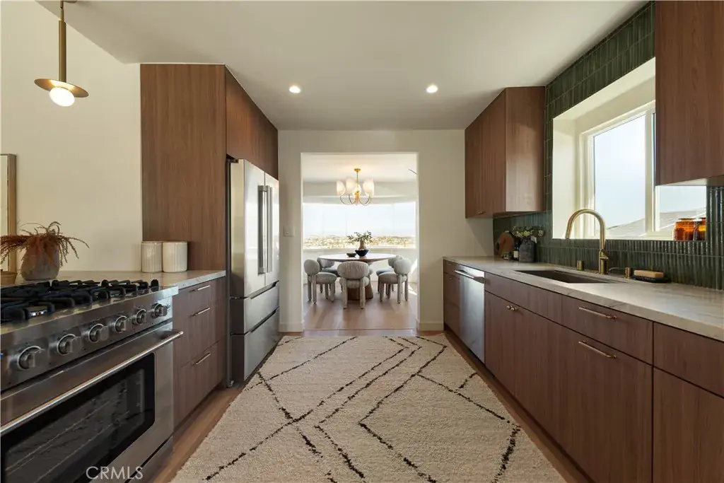 Perched above the coastline in the Upper Hollywood Riviera, 512 Via La Selva showcases Queen’s Necklace and expansive city views. This thoughtfully reimagined home offers a sense of openness and is designed for comfort and connection—defining the best of coastal South Bay living. The main level features an open living and dining area filled with natural light, framed by panoramic ocean and city skyline views as a dramatic backdrop stretching across DTLA and beyond. Large windows and an open layout connect the interior spaces to the surrounding views, making the home equally well suited for everyday use and entertaining. The well-appointed kitchen opens directly to the family room and rear yard, creating a functional and inviting flow throughout the floor plan. The kitchen features custom cabinetry, Calacatta Taj honed quartz countertops, gourmet stainless steel appliances, a welcoming breakfast nook, and a large peninsula that serves as a natural gathering space. Three well-proportioned bedrooms are located on the upper level, providing comfortable and private accommodations. Each bathroom has been tastefully updated with clean, contemporary finishes, including porcelain and terrazzo flooring, that complement the home’s overall design. Neutral tones continue throughout the home, highlighted by luxury vinyl plank waterproof flooring. The lower level provides a secluded primary retreat with flexible bonus space, ideal for a home studio, creative space, gym, or secondary lounge—well suited for today’s evolving lifestyles. Outdoors, the property features fresh landscaping, a patio area, and a spacious, flat, and usable rear yard designed for entertaining, recreation, and relaxation. Ideally located just minutes from world-class beaches, scenic coastal trails, award-winning schools, and the dining and boutiques of Riviera Village, this home offers a rare balance of privacy, convenience, and setting. Few places compare to the Riviera lifestyle.