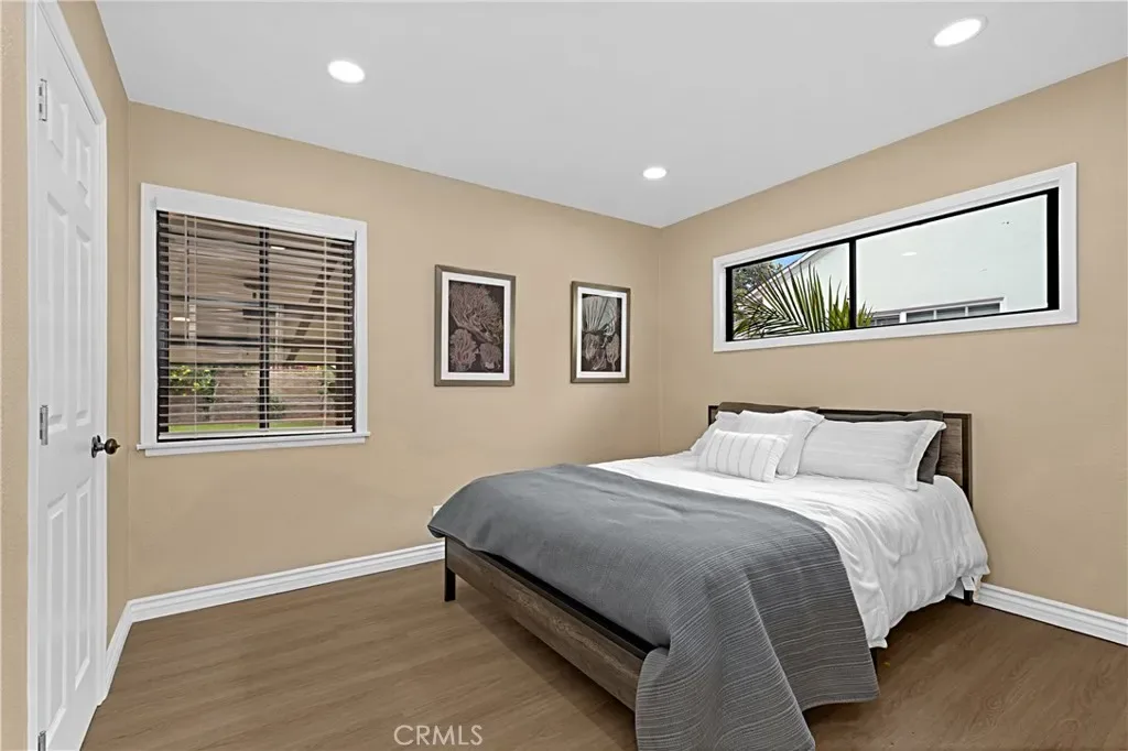 This 1-level, 3-bedroom home showcases thoughtful upgrades and meticulous attention to detail. Bathed in natural sunlight, and backing up to a neighborhood park, this property is waiting for the most discerning buyer. Recent improvements include new flooring, a remodeled kitchen and bathroom, recessed lighting, window moldings, new doors, stainless-steel appliances, and a stacked washer/dryer conveniently located inside the main house. The exterior has been freshly painted and features new landscaping and new iron gates that enhance both curb appeal and security. Every feature has been carefully selected to provide comfort, functionality, and modern style.