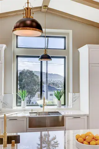 Across five bedrooms and five-and-a-half baths, the home is arranged to maximize both outlook and livability, with ocean views unfolding over two levels. Pocketing glass walls open to view terraces and outdoor dining areas, creating a seamless connection between interior spaces and the coastal landscape.