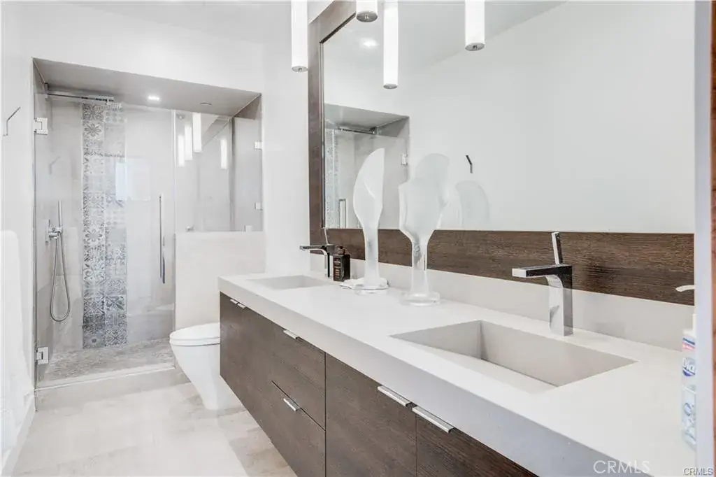 glass enclosed shower, and a dual sink vanity. Two additional bedrooms are generously sized,