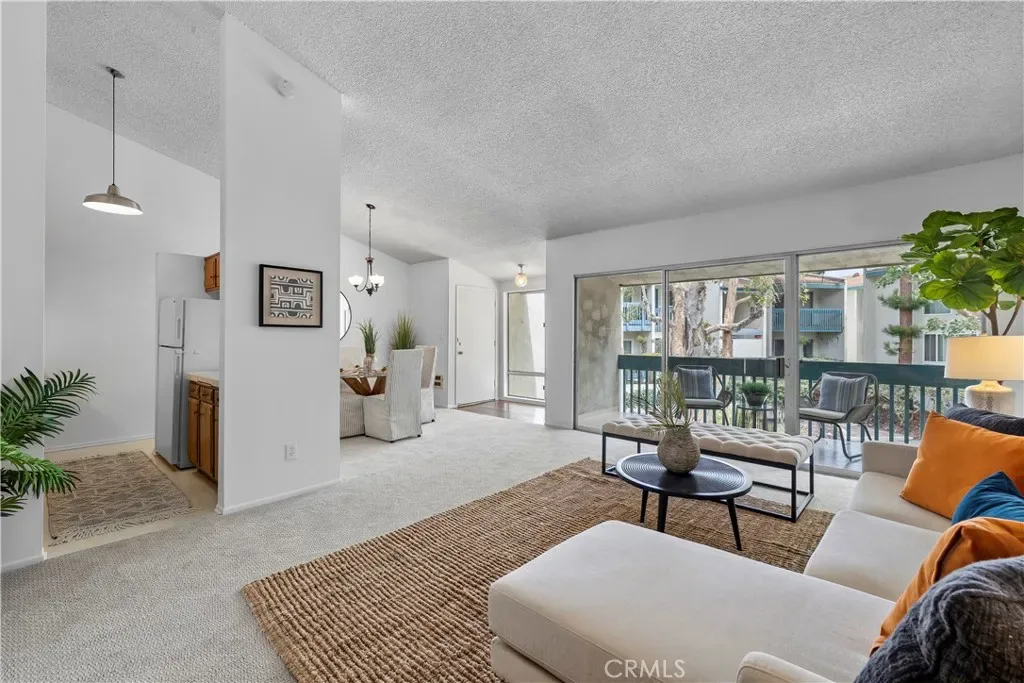 Experience elevated coastal living in this light-filled 2-bedroom, 2-bath condo set within the desirable Brookside Village community in Redondo Beach. Positioned on the upper level, this residence features soaring vaulted ceilings and expansive natural light, giving the home a bright, open feel throughout. The flowing layout connects the living, dining, and kitchen areas—ideal for everyday living and hosting—while a private balcony extends your space outdoors to enjoy ocean-kissed breezes.