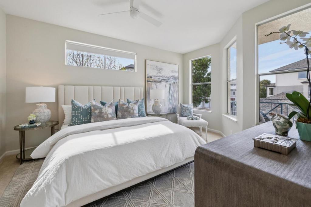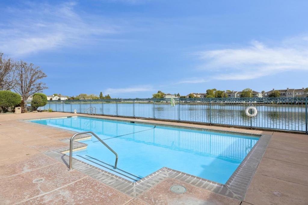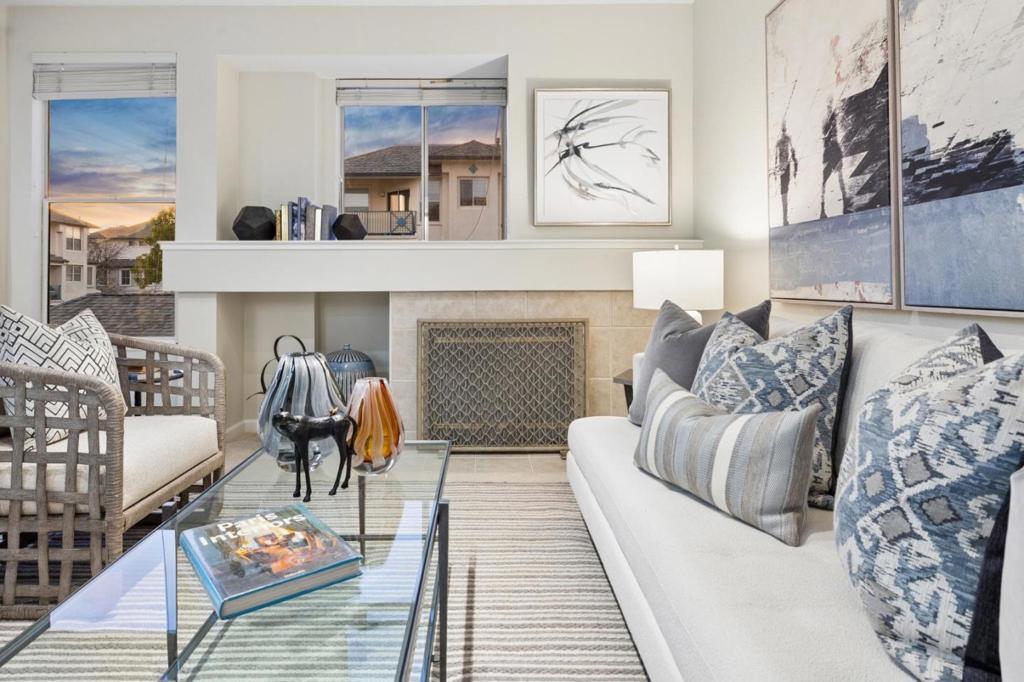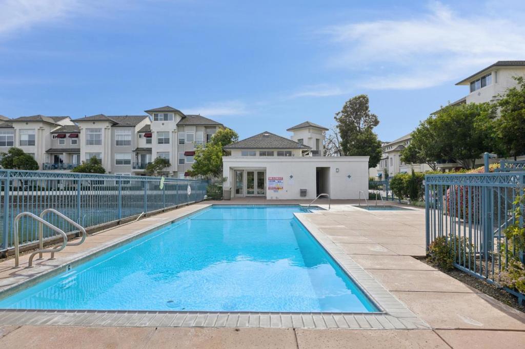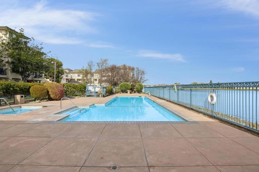 Updated modern condominium in Ventana del Mar on Redwood Shores Lagoon. Featuring a sought-after split-bedroom floor plan, this unit with two bedrooms and bathrooms centers on an open-concept living space. The open living and dining areas enjoy the warmth of a cozy fireplace and cool breeze from the balcony. The streamlined kitchen, boasting chic cabinets, quartz counters, and stainless steel appliances, overlooks the living space via a dining counter, perfect for entertaining. The primary suite offers a serene retreat with an array of windows and reading nook, a modern bathroom with double-sink vanity, and a walk-in closet with Elfa storage. A second bedroom with an adjacent bath, plus in-home laundry, adds ultimate convenience. Residents enjoy resort-style amenities, including a waterside pool, spa, fitness center, clubhouse, 2 parking spaces, and access to shoreline walking paths. Come live the dream!