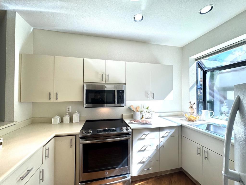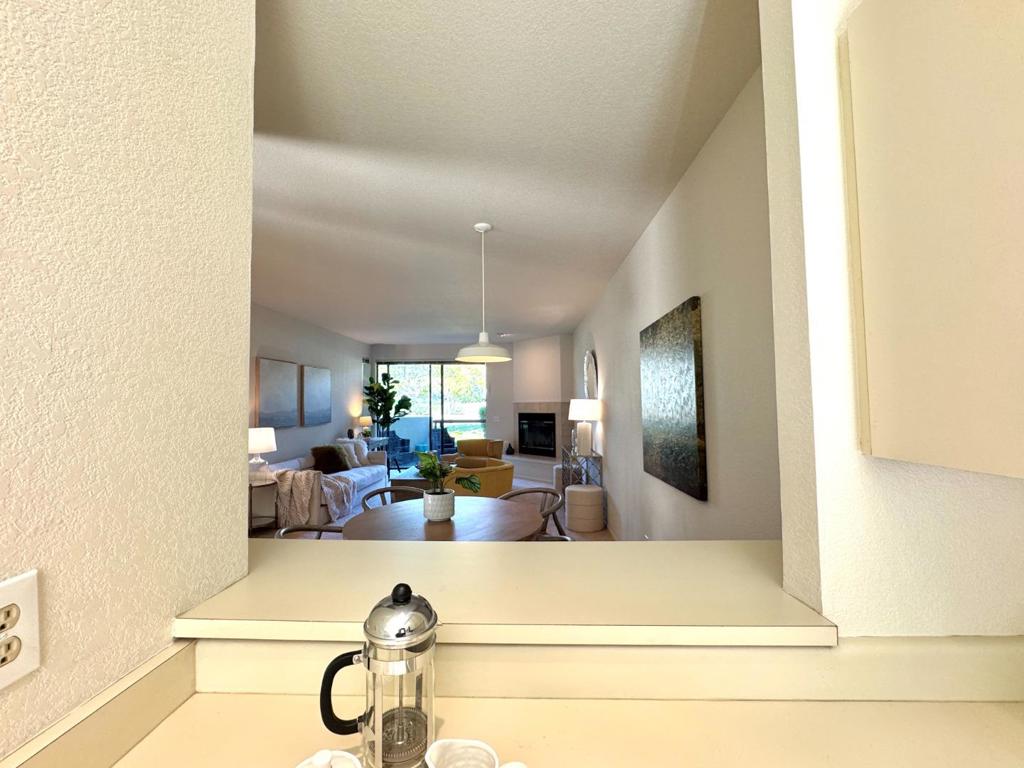 Move-in ready; life is easy here at 101 Shorebird Circle! First floor unit and so close to parking (2 reserved spots for parking; one carport and one uncovered. Freshened up for the pickiest buyer. Kitchen features electric range with microwave above, a large pantry and ample counter space plus a pass through/dining bar to dining area. Large bedroom with access to north facing patio to watch the Canada Geese wander the grounds. Relax after work in front of your wood-burning fireplace in the living room or go swim at either of the two swimming pools. Well run HOA. Radiant heat in ceilings.