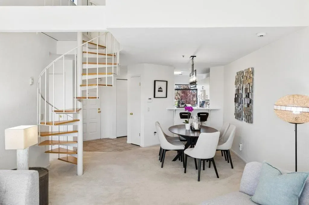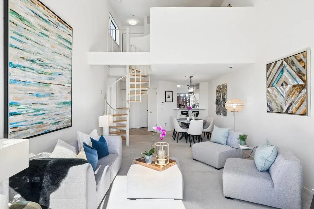 Rare, corner unit complete with balcony that overlooks the wide waterway! An open-concept living-dining area features a fireplace, soaring ceiling, and wide sliding doors that let in light and open to a balcony. The kitchen has been updated, interiors have been painted, and now your watercentric lifestyle can begin. The primary bedroom boasts a soaring ceiling, private bath and balcony with tranquil lagoon views. A bedroom loft on has build-in storage, with desk making it an efficient office space. Located close to good schools, parks, playgrounds and the expansive Bay Trail, library, world class employers, shopping, restaurants and recreational opportunities, plus major commute routes. Welcome to Home to 234 Shorebird Circle!