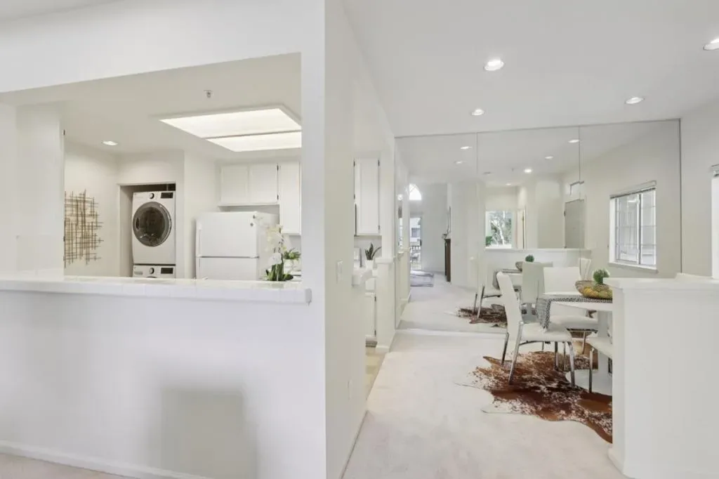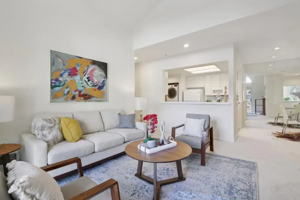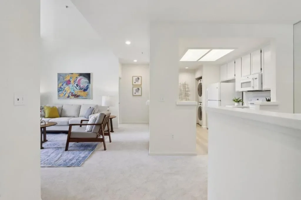 Welcome to this bright and spacious 2-bedroom, 2-bath condo located in beautiful Redwood Shores. A highly desirable top-floor end unit with soaring ceilings in the living room creates an airy open atmosphere. The open-concept layout features a comfortable living area, defined dining space, and a modern kitchen perfect for both entertaining and everyday living. Step out onto your private, spacious balcony ideal for morning coffee or unwinding at sunset. Both bedrooms are generously sized, with the primary bedroom also having access to the balcony. New carpet and paint throughout. The unit also includes in-home laundry for your convenience. Enjoy the serenity of a peaceful, landscaped community complete with a pool and spa and close to walking trails. A detached one-car garage adds convenience and storage. Just a short stroll to The Marketplace at Redwood Shores, offering shopping, dining, and cafes to meet your daily needs. Top-rated schools and easy access to Highway 101 complete this exceptional offering. Don’t miss this rare opportunity to live in one of the Peninsulas most sought-after neighborhoods!