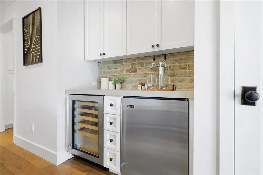 Built in 1929 and extensively remodeled in 2019, this Mount Carmel residence was taken down to the studs to thoughtfully modernize the layout while preserving its classic charm. The renovation introduced a private primary suite and bathroom along with an expanded gourmet kitchen tailored for modern living. The spacious living room features a gas fireplace with granite tile mantle, built-in storage, and a large picture window that fills the space with natural light. The formal dining room offers additional built-in cabinetry, blending function with timeless design.The chefs kitchen is equipped with premium appliances, including a Viking Professional 6-burner gas range and oven, Sub-Zero refrigerator, Wolf steam oven, drawer microwave, wine refrigerator, and kegeratorideal for both everyday living and entertaining. Additional highlights include a fully upgraded electrical panel, integrated built-in sound system, and a detached garage suitable for parking or flexible use as a gym, office, or studio. A quaint backyard provides a peaceful outdoor retreat. Ideally located near downtown Redwood City, parks, dining, and major commuter routes.