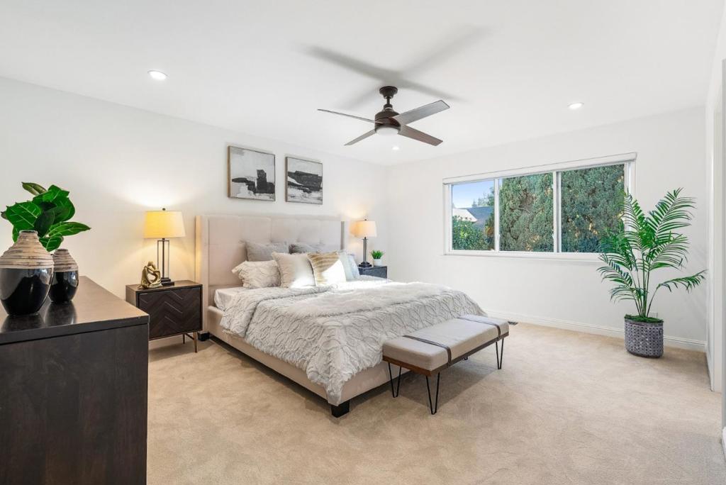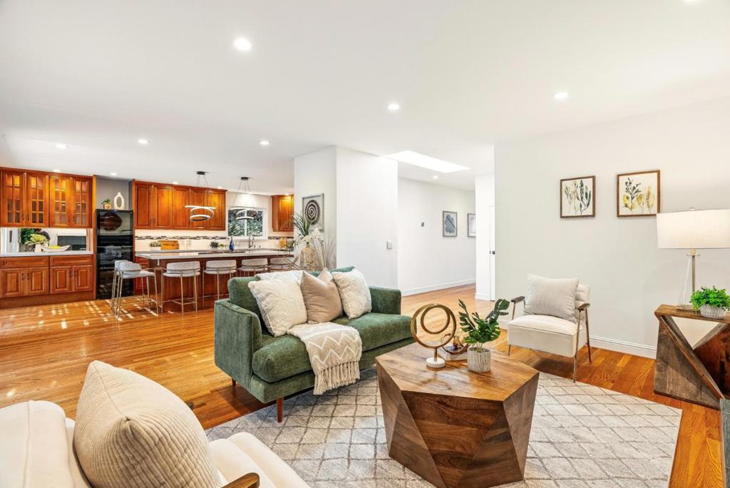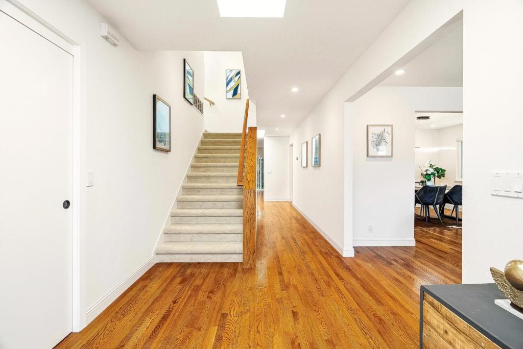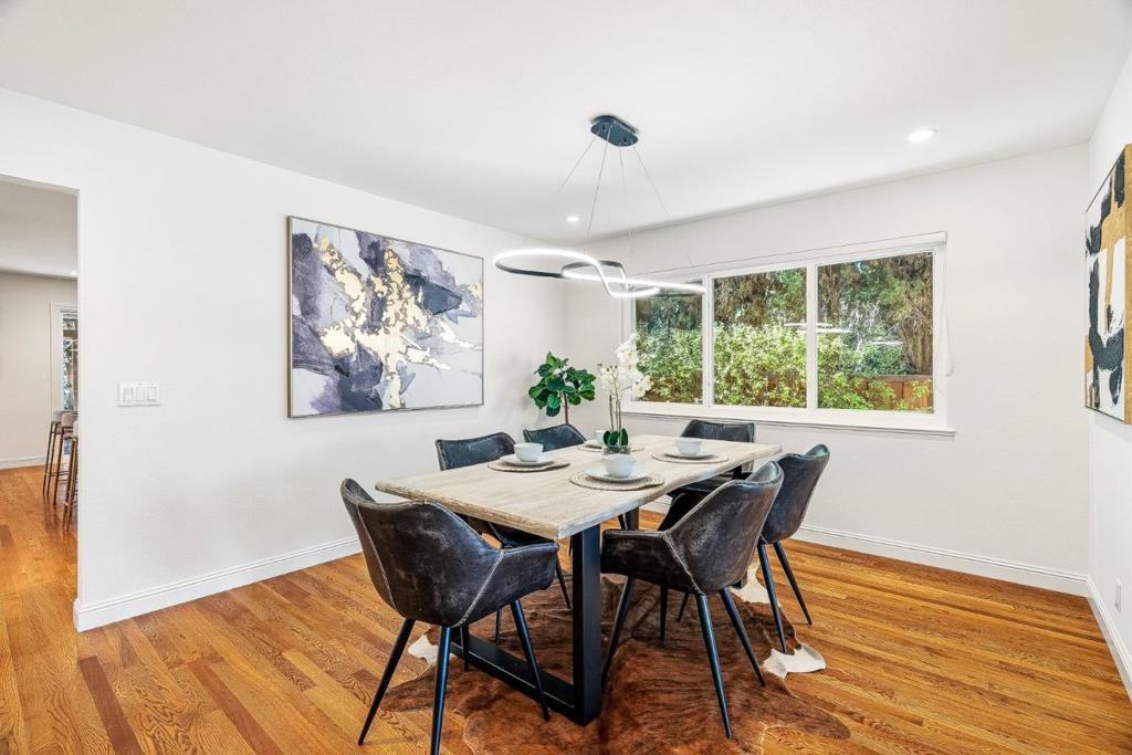 Extensively upgraded & thoughtfully reimagined since 2018, this exceptional 4BD/3BA residence blends timeless architectural character with refined modern comfort. Grand double doors open to light-filled interiors highlighted by solid red oak hardwood floors & designer lighting. The expansive living & formal dining rooms are anchored by two dramatic gas fireplaces. The spectacular chefs kitchen features a striking quartz island with seating for six, custom soft-close cabinetry, premium appliances, a wine refrigerator, & a stylish entertainers bar. The kitchen flows seamlessly into the spacious family room, creating a true great room with 2 sliding glass doors opening directly to the private backyard. A main-level bedroom adjacent to full bathroom offers extra flexibility. Upstairs, the oversized primary suite serves as a luxurious retreat with a spa-inspired bath featuring a soaking tub, expansive dual shower, custom cabinetry, & designer fixtures. The beautifully landscaped backyard features a redwood pergola, curated gardens, fountain, & custom hardscape. Major system upgrades include a newer roof, HVAC, dual-pane windows & doors, skylights, & smart home features. Ideally located near downtown Redwood City, major tech campuses, & key commuter routes.
