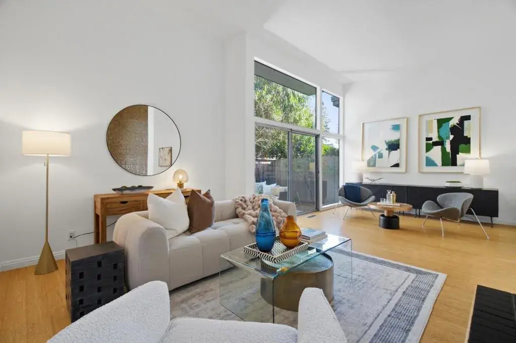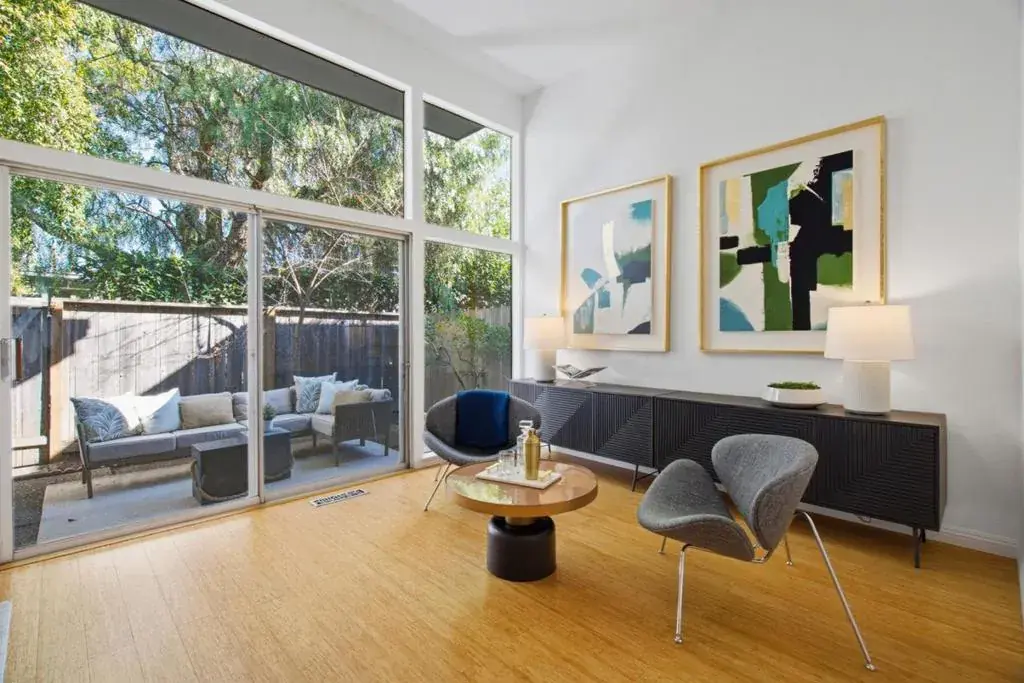 Rare opportunity to buy this 2 BED/2 BATH, end unit townhome in a quiet 18-residence community on the west side of Redwood City offers a bright, uplifting layout with high ceilings and expansive windows that fill the living space with natural light. The spacious primary suite includes a private treetop balcony and an ensuite bathroom. A peaceful private yard opens to the community pool and courtyard, and the attached two car garage offers convenience and storage. Set in the established Redwood Oaks neighborhood, the home is close to Target, CVS and local restaurants, and only minutes from Costco, Caltrain, downtown Redwood City, downtown Menlo Park and the Meta campus, creating a rare blend of comfort, modern style and exceptional access.