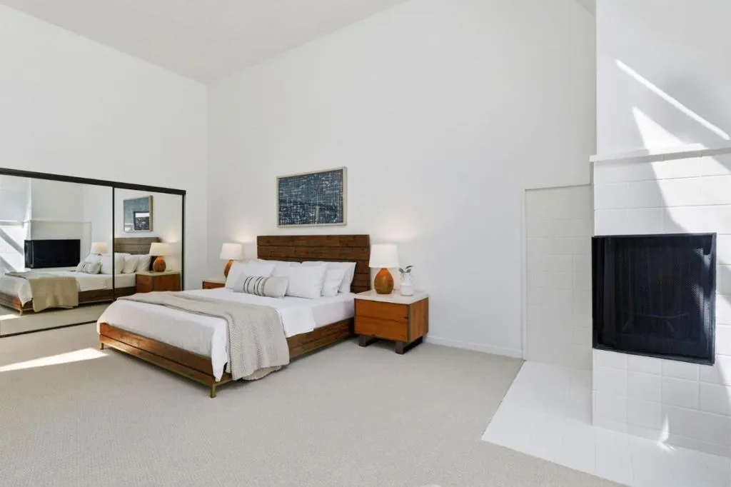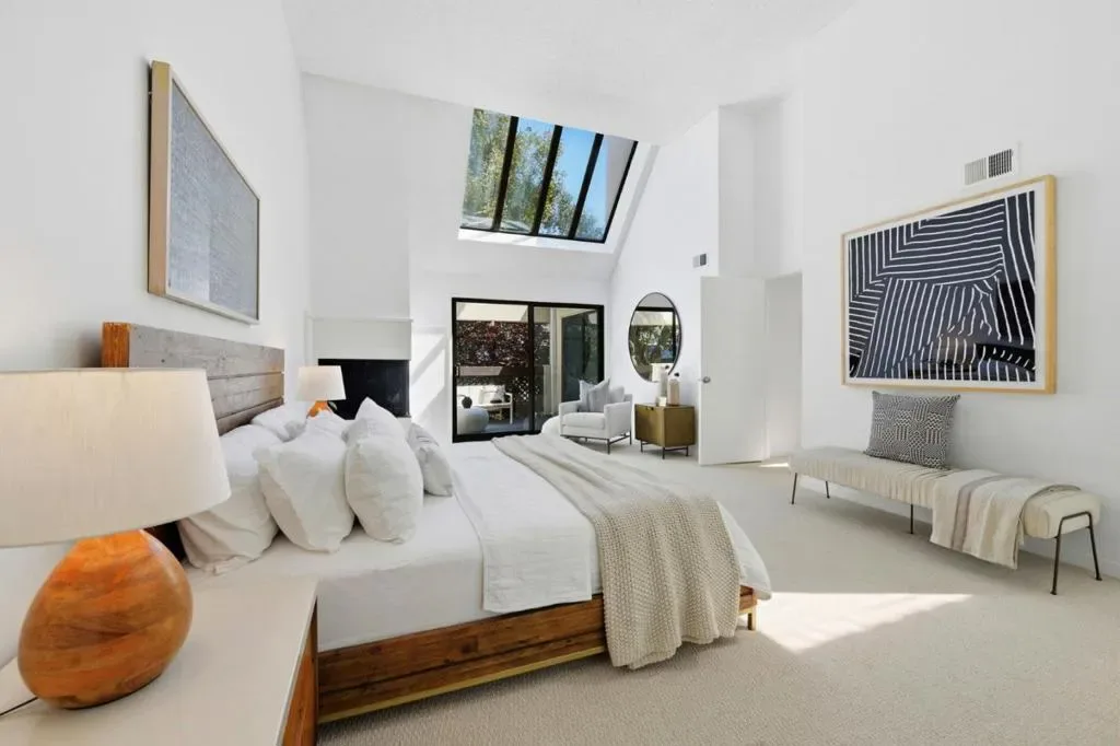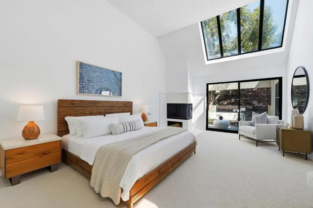 Experience nature and serenity as you step into this spacious, chic, top-floor, single-level, corner condo with views of green foliage and meandering waterways. Dramatic vaulted ceilings, skylights, and picture windows flood the home with natural light. The living room flows to one of two balconies overlooking the water and is great for entertaining or unwinding. The primary bedroom is oversized with soaring ceilings, wall-to-wall closets, and a secondary fireplace. Both bathrooms were just remodeled with brand new vanities, tile floors, sinks, faucets, and light fixtures. The kitchen features a breakfast nook and pantry and the dining area has a new chandelier. The walls have been freshly painted and new cozy Berber carpets were just installed. There is convenient side-by-side laundry in the hall. One assigned parking spot and storage closet are located in the shared, gated, garage just below the unit. The complex has a clubhouse and 2 swimming pools with jacuzzis for residents to enjoy along the water. Shorebird Circle in Redwood Shores is close to shopping, restaurants, daily essentials, bay front walking trails and cycling paths. Located in Silicon Valley, the Shores offers easy access to internationally recognized companies, major commuting routes, and highly ranked schools.