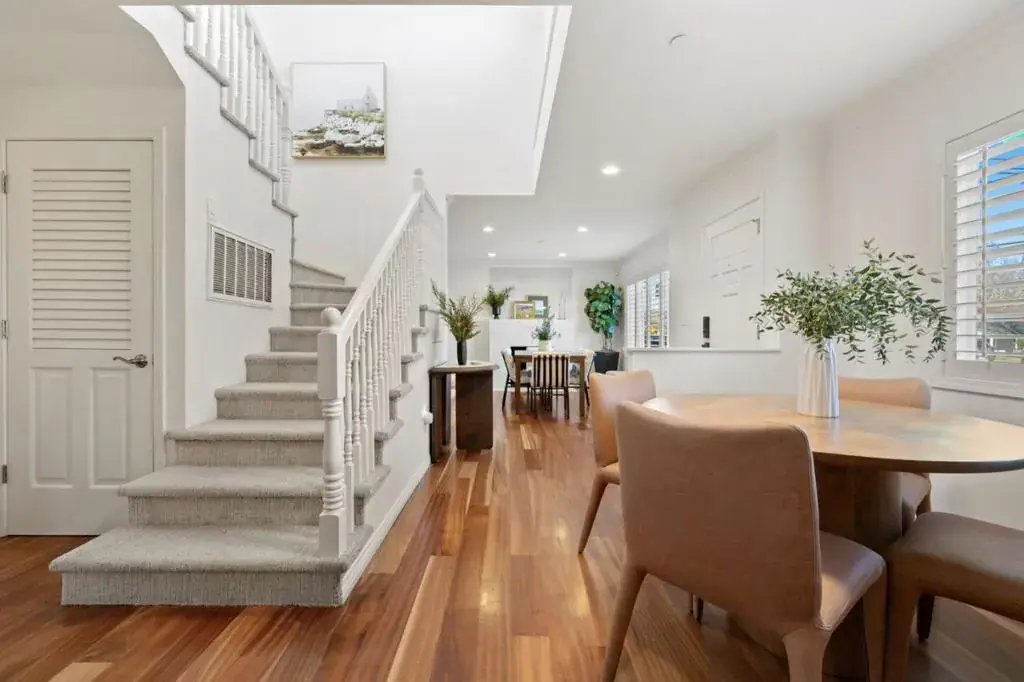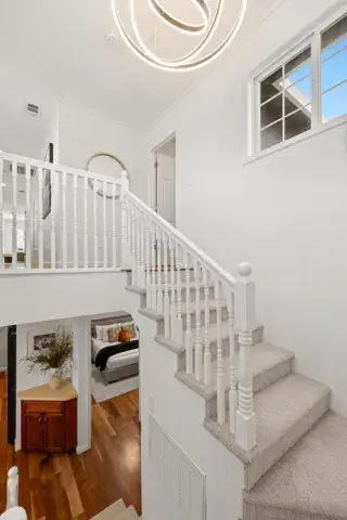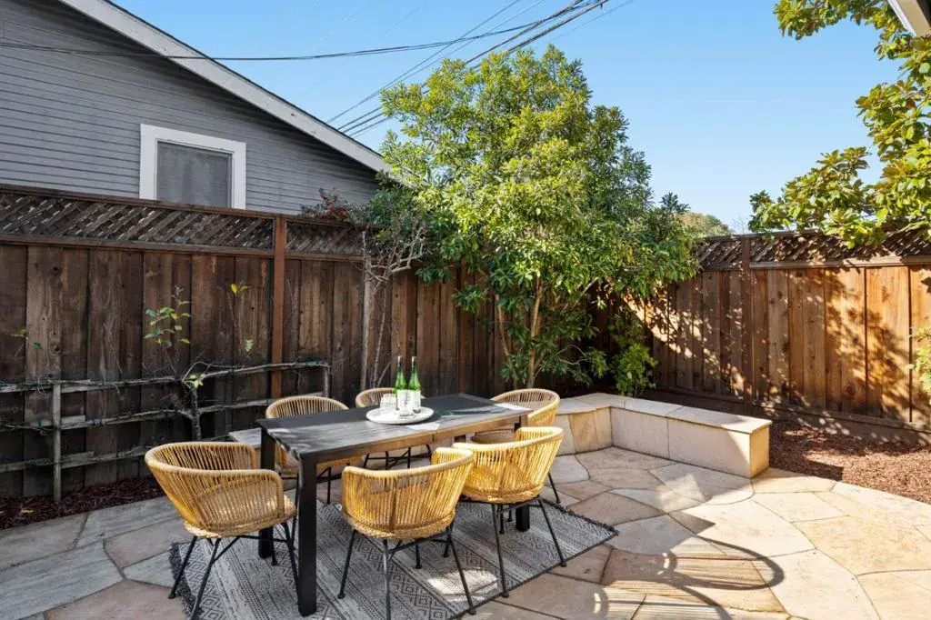 612 Hudson Street is a light-filled, flexible home with a layout that adapts to a range of needs. The main level includes a full bedroom and bathroom, providing versatility for guests, work-from-home needs, or multi-generational living. Living and dining areas connect directly to the backyard, creating an easy indoor-outdoor flow, with an adjacent side yard dedicated to gardening and additional outdoor use. Upstairs, three bedrooms are positioned away from the main living spaces. The primary suite features a walk-in closet and a clean, modern bathroom. The secondary bedrooms primarily overlook the backyard and side yard, offering added separation from the street. Additional insulation in key living areas helps create a calm interior environment. Both the front and backyard are fenced and landscaped, creating a sense of privacy and separation from the sidewalk. A generous two-car garage with loft storage, built-in closets, and a wide driveway provides ample off-street parking and expanded storage, with direct access to both the backyard and side yard. Located near downtown Redwood City, Caltrain, parks, schools, and neighborhood markets, this home offers a well-considered layout, practical amenities, and a central Peninsula location.