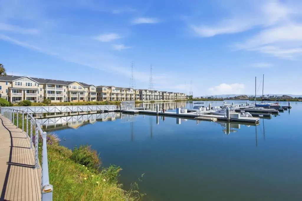 Steps from the bay, this stunning 2-bedroom, 2.5-bath luxury condominium at One Marina offers the perfect blend of tranquility, style, and bay living. Tucked away in a quiet interior location, this spacious modern residence features an open-concept floor plan anchored by a large great room, ideal for both everyday living and entertaining. The beautifully appointed kitchen showcases a generous island for casual dining, stainless steel appliances, a gas range, and a dedicated formal dining area. The living room opens seamlessly to a covered balcony. Down the hall, two en suite bedrooms provide private retreat-like comfort. The versatile floor plan also allows for an optional in-home office. With no neighbors above or below, enjoy enhanced privacy and quiet. Additional highlights include crown molding, pre-wired speakers in living room and primary suite, plantation shutters, a powder bath, recessed lighting, ceiling fans, air conditioning, inside laundry with extra storage, and an attached two-car garage. Residents enjoy an abundance of outdoor amenities just outside their door launch a kayak from the dock, hike or bike scenic trails, or spend the day at the playground or nearby beach, easy access to Hwy 101, walk to downtown and so much more. This is bay living at its finest.