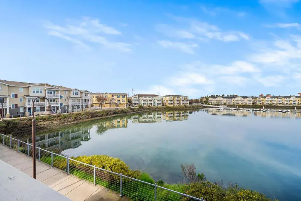 Welcome to effortless waterfront living in the highly sought-after One Marina community. This beautiful 2-bedroom, 2.5-bath top-floor residence offers 1,428 sqft of bright, open living space with wide water views & a thoughtfully designed floor plan with all living areas on one level. The spacious chefs kitchen flows seamlessly into the living and dining areas, ideal for everyday living and entertaining. A deck-style balcony extends off the main living space, creating the perfect indoor-outdoor connection for morning coffee or sunset unwinding. Both bedrooms enjoy water views, & the generous primary suite features a large walk-in closet. Additional highlights include a dedicated laundry room with washer and dryer, custom window coverings, & an oversized attached two-car garage. Residents of One Marina enjoy a resort-style lifestyle with waterfront walking trails, a community dock, a park, BBQ and picnic areas, & a play space, plus easy access to trails at the Don Edwards San Francisco Bay National Wildlife Refuge. Ideally located just min. from downtown Redwood City with walkable access via the highway underpass this home offers dining, shopping, Caltrain access, and convenient connections to Highway 101, Silicon Valley, & SF.