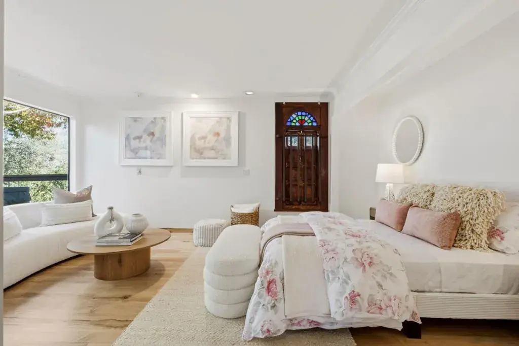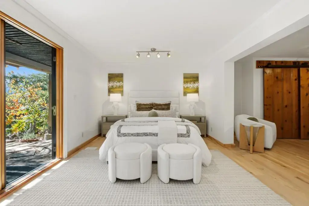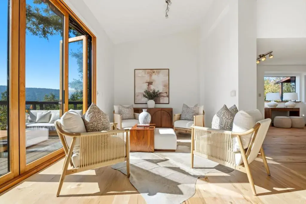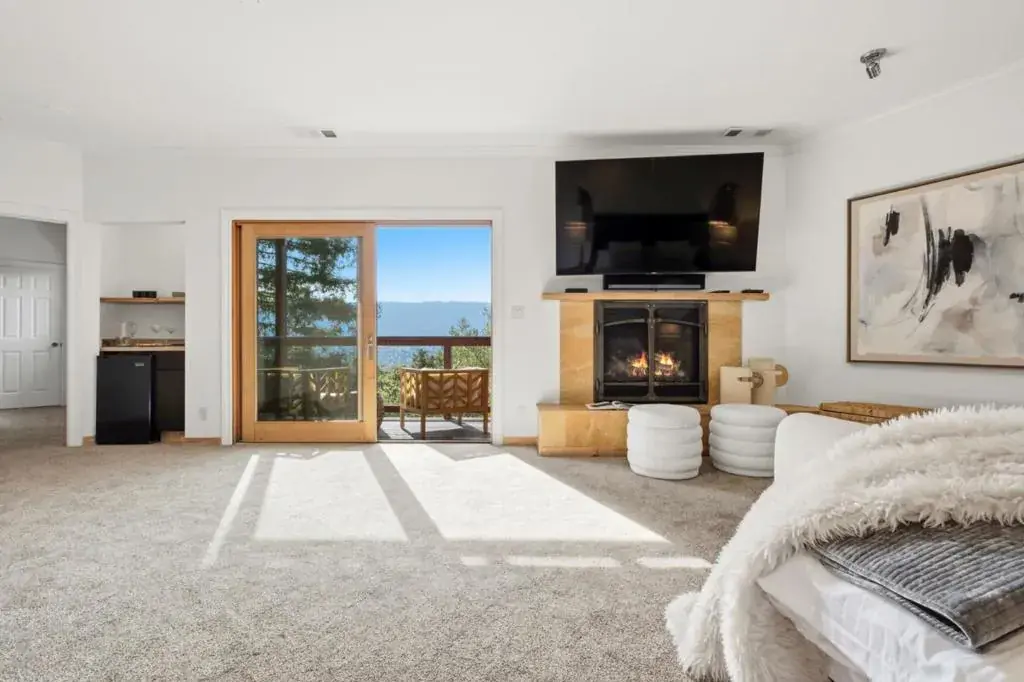 Welcome to a residence where artistry meets architecture. Set in Emerald Hills on an expansive view lot, the home was designed for those who value quality, creativity, and originality. From the custom iron gate by Burning Man artist Bryan Tedrick to the antique Santa Fe stained-glass entry window, every detail tells a story. Soaring ceilings and dual 7×20 folding glass doors dissolve boundaries between inside and out, opening to expansive decks with sweeping views. The chef’s kitchen features a granite island, six-burner range with pot filler, oversized refrigerator, and custom cabinetry. The primary suite offers a spa-inspired granite bath with steam shower, soaking tub, walk-in closet, and gas fireplace. The lower level, once an art gallery, invites income potential or flexible living space with separate access. The grounds include terraced gardens, mature fruit trees, solar panels with EV charging, and cedar outbuildings ideal for a gym, studio, or retreat. Close to amenities, but it feels like a world away.
