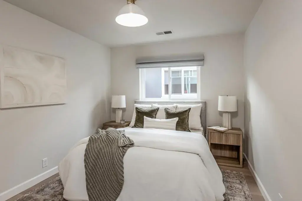 Beautifully remodeled with turnkey appeal, this North Fair Oaks gem showcases modern livability midway between Silicon Valley and San Francisco. The flexible two-story layout features two bedrooms and two remodeled baths, all enhanced by a palette of soft designer colors and white oak engineered hardwood floors. The open living area at the entrance has a modern chandelier and connects seamlessly to the sleek kitchen with a quartzite-topped peninsula with counter seating, custom suspended vent hood, and stainless steel appliances. At the rear of the home is a spacious family room that opens to the private paver-finished rear yard. A main-level bedroom and bath are complemented by the upstairs primary suite with walk-in closet, western hill views, and well-appointed bathroom. Smart features include a Ring doorbell, keyless front entry, and a smart thermostat along with central air conditioning. Roses, geraniums, and a camellia enliven the setting, which has ample off-street parking and an attached 1-car garage. Just blocks from the Redwood City Stanford campus and minutes to Meta headquarters and Highway 101.
