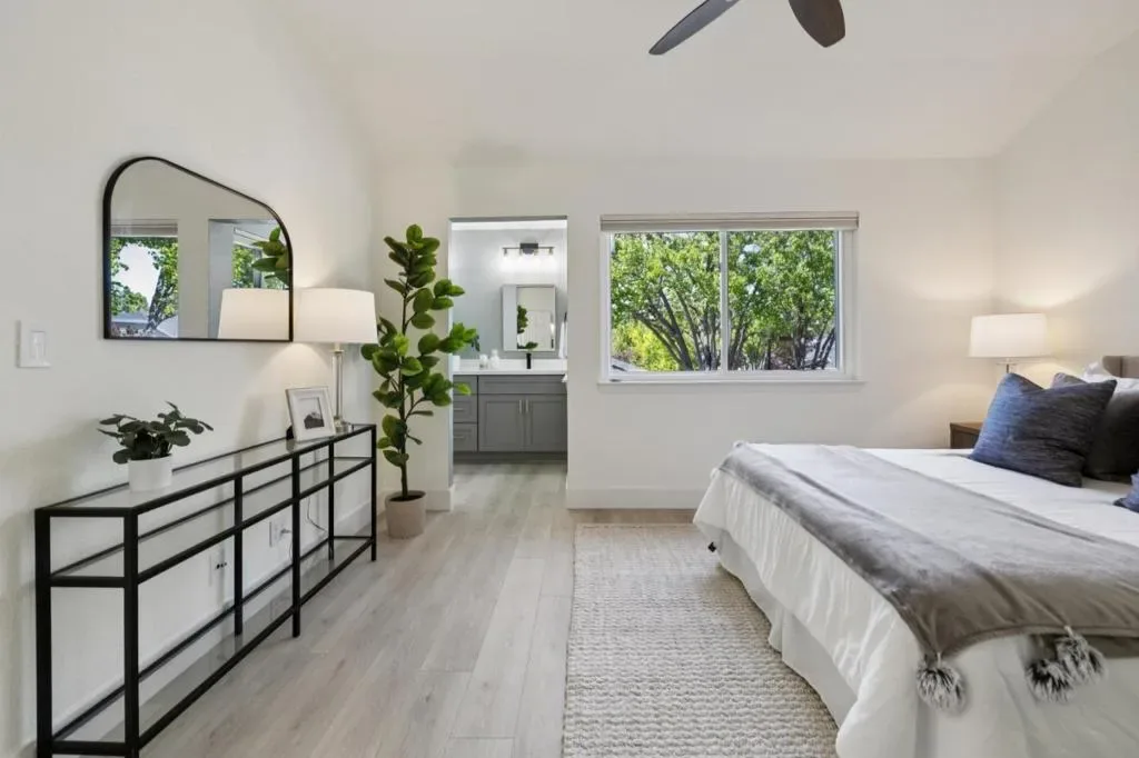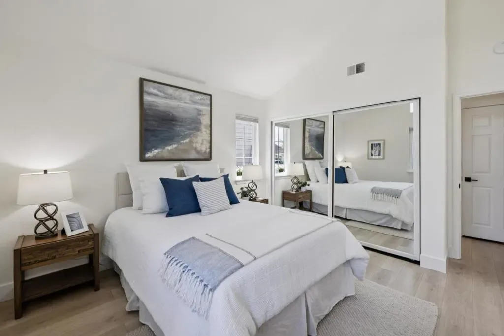 Beautifully refreshed home in the desirable Beacon Shores community. A charming white picket fence welcomes you into a bright, airy interior featuring soaring ceilings, abundant natural light, and a striking fireplace. The open floor plan flows seamlessly from the living area to the dining space with dual sliding doors leading to a fenced patio, ideal for indoor-outdoor living. The updated kitchen boasts quartz countertops, an expansive breakfast bar, ample cabinetry, and new stainless steel appliances as well as a handy desk area. Two spacious primary suites offer comfort and privacy, including an entry-level suite and an upper-level retreat, both with updated ensuite bathrooms. Stylish entry level powder room for guest use. Private landscaped yard. Additional features include luxury plank flooring, central A/C & heating, smart home systems, and attached two-car garage with laundry. Located near parks, lagoons, trails, shopping, dining, Caltrain, and major highways. HOA community pool & spa. This home is ready to move in!! Community Pool & well maintained neighborhood. Open House : Thurs. 4/9 4:30-6:30, Sat 4/11 & Sun 4/12 1:30pm-4:00pm