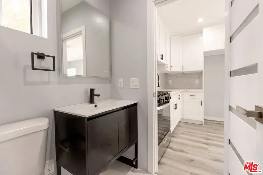 This newly constructed contemporary ADU offers a thoughtfully designed one bedroom, one bathroom layout with approximately 350 square feet of modern living space. Designed for privacy and comfort, the open concept interior features wood style flooring, recessed lighting, and abundant natural light that enhances the clean, modern aesthetic.The kitchen is well appointed with stainless steel appliances, crisp white cabinetry, and a stylish backsplash that complements the overall design. The bedroom provides a comfortable retreat with mirrored closet doors, while the bathroom features a sleek walk in shower accented by elegant tile work and modern matte black fixtures. Additional features include efficient air conditioning and a separate private entrance for added convenience. Located in a desirable neighborhood near local amenities, this ADU offers an ideal balance of comfort and functionality. Street parking is available, utilities are included, and there is no laundry on site. This small, efficient unit features a compact layout and is move in ready!