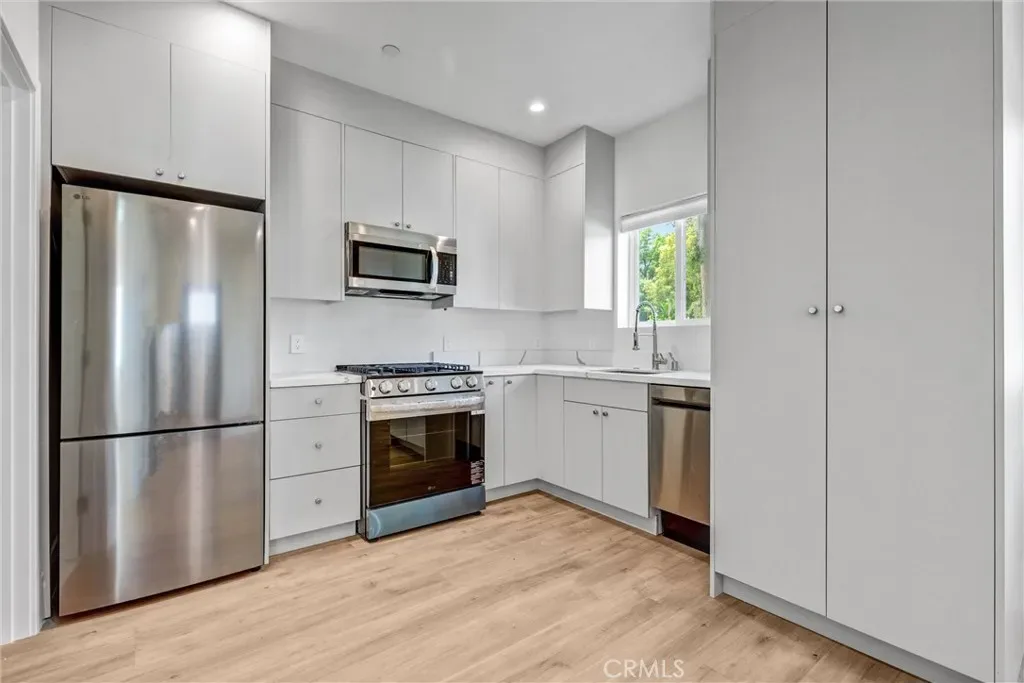 The attached ADU offers its own private entrance and gated yard space, providing independence and privacy. Finished to the same high standard, it includes stainless steel appliances, gas range, dishwasher, in-unit washer and dryer, energy-efficient windows, surround sound speakers, security system, and separate heating and cooling.