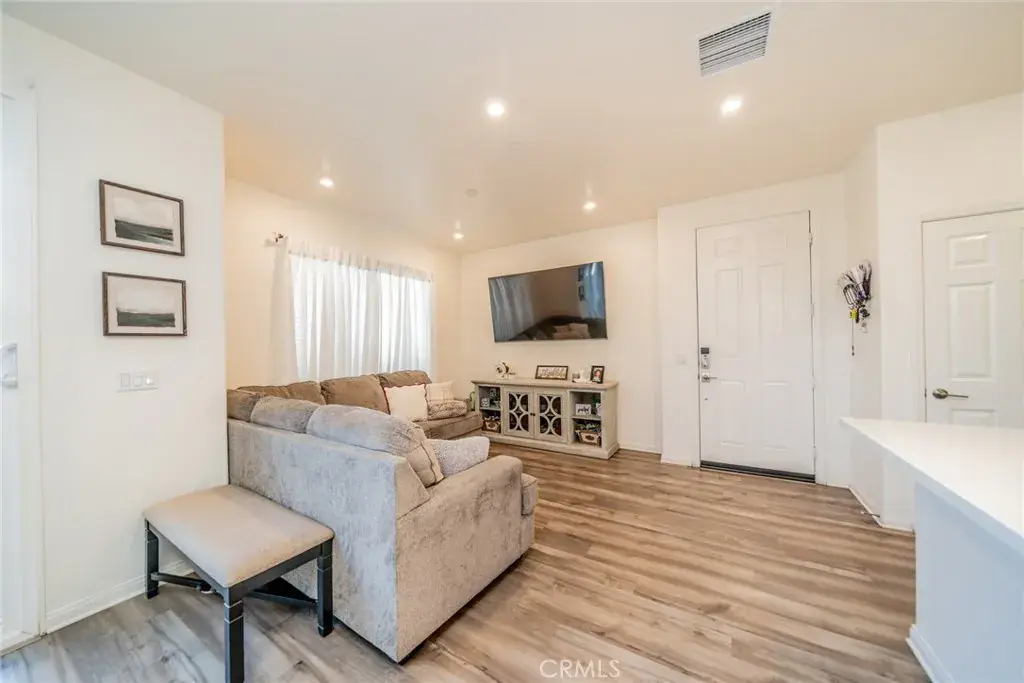 Welcome to this beautiful and peaceful community in the heart of Rialto! This modern two-story home offers 3 bedrooms, 2.5 bathrooms, and 1,549 sq ft of comfortable living space. The open-concept main floor features a bright great room, dining area, and a stylish kitchen with a large island, quartz countertops, white shaker cabinets and a pantry. Waterproof laminate flooring flows through the kitchen, living areas, and the upstairs laundry room, while all bedrooms include soft carpeting.