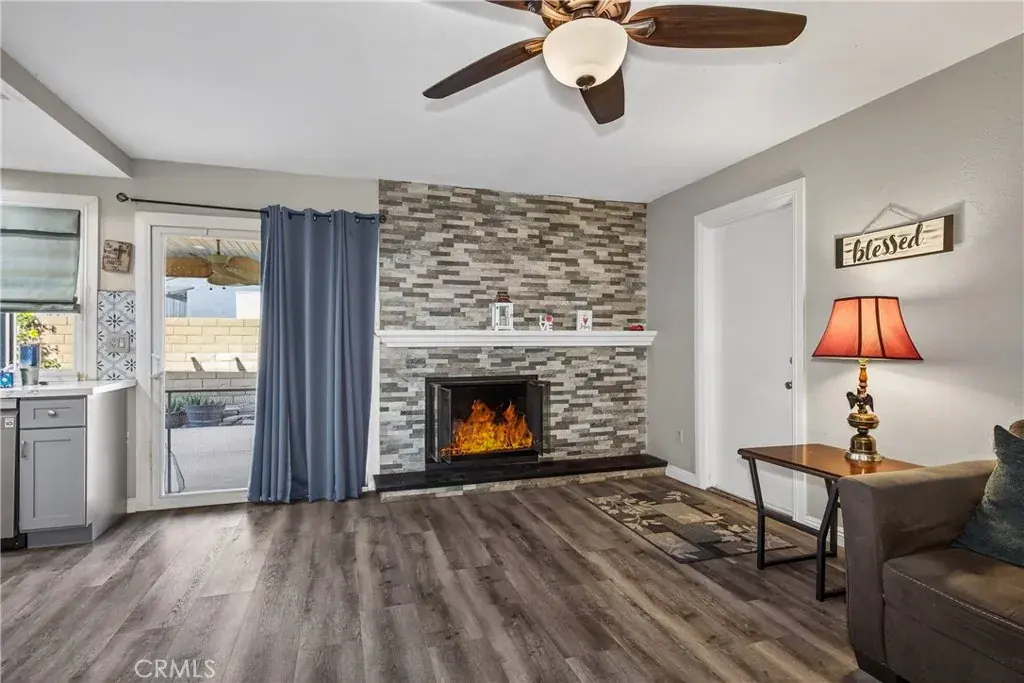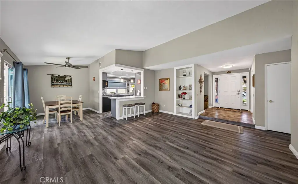 Welcome to your new home, nestled in a quiet and established cul-de-sac. This spacious 4-bedroom, 2-bathroom residence has been beautifully updated and is move-in ready. The open kitchen blends functionality and style, creating the perfect setting for everyday meals and effortless entertaining, complete with a convenient breakfast bar. The living room offers an open and airy feel, while the family room with fireplace and the dining area provide flexible spaces for relaxing, hosting gatherings, or creating a playroom or additional lounge space. The primary suite serves as a comfortable retreat, featuring two closets for ample storage and an en suite bathroom with a dual-sink vanity and updated finishes. Three additional bedrooms offer versatility for a growing family, home office, or fitness space. Step outside to a generously sized backyard with mature fruit trees, including lemon, orange, apple, and pomegranate. A large storage room attached to the home provides valuable extra storage. Whether enjoying a quiet evening outdoors or entertaining guests, this backyard offers endless possibilities.