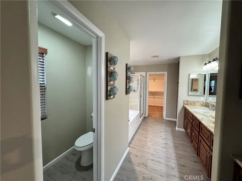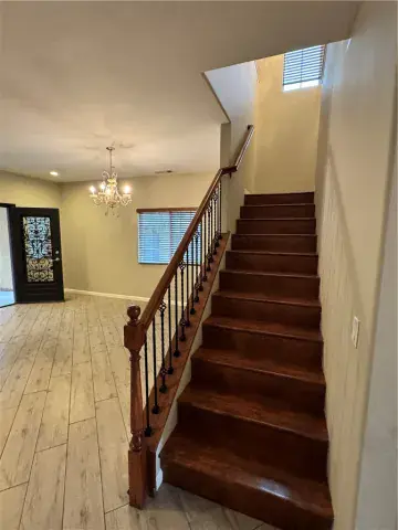 Built in 2017, this beautifully designed two-story home offers 5 bedrooms and 3 bathrooms with modern finishes throughout. The spacious master suite features a double-vanity bath, walk-in closet, wooden linen cabinetry, and a separate shower and soaking tub with city views. The first floor showcases light-colored tile flooring, an elegant iron entry door, a staircase with a wooden handrail and wrought iron balusters, and a beautiful antique gold French country crystal chandelier which can be found throughout the property on both floors. The kitchen features an Island for ample prep space & a walk in pantry for maximum storage space. Upstairs, enjoy wood flooring, an open floor plan, and a bedroom with a private balcony offering mountain views. Have more than one vehicle? No problem, this beautiful property has a two-car garage as the cherry on top. Conveniently located just off the 210 freeway for easy commute and less than a mile from the Renaissance Marketplace for easy access to shopping, dining, and entertainment. Come see it for yourself and imagine the possibilities!