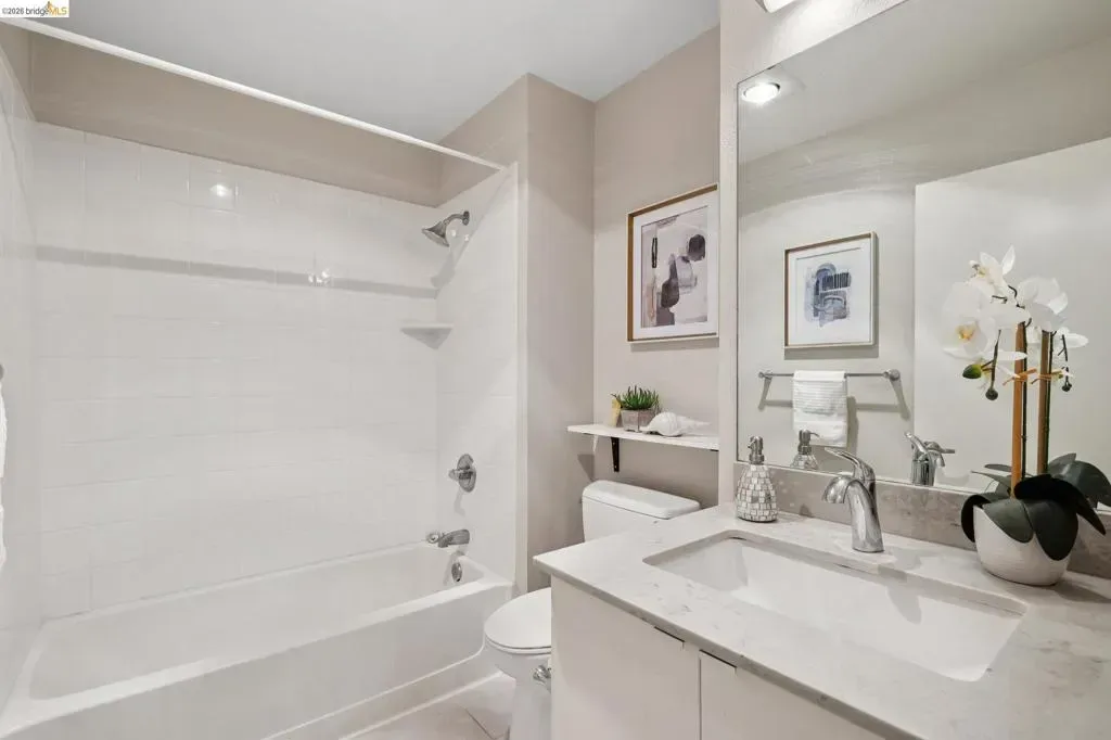 Welcome to one of the largest 2-bedroom, 2-bath upper-level corner units in the highly sought-after Marina Bay community. This bright and airy end-unit home features additional windows in both the kitchen and living room, filling the space with natural light while offering peaceful lagoon and greenbelt views. Surrounded by the serene beauty of the community lake and lush landscaping, the home provides a tranquil connection to nature right outside your door. The spacious open-concept layout showcases beautiful flooring throughout, a romantic fireplace, and a modern kitchen complete with solid-surface countertops and energy-efficient stainless-steel appliances. Both bathrooms have been tastefully updated for modern comfort and style. Step onto your private balcony to unwind and take in the water views, with the added convenience of bonus outdoor storage. Enjoy a secure gated community with Bay Trail access, perfect for walking, biking, or kayaking. Amenities include two heated pools, spa, fitness center, clubhouse, EV charging, tennis & pickleball courts, and carport parking. Prime commuter location near 580/80, BART, and the Richmond Ferry, plus close to waterfront restaurants, parks, and the weekly farmers market.