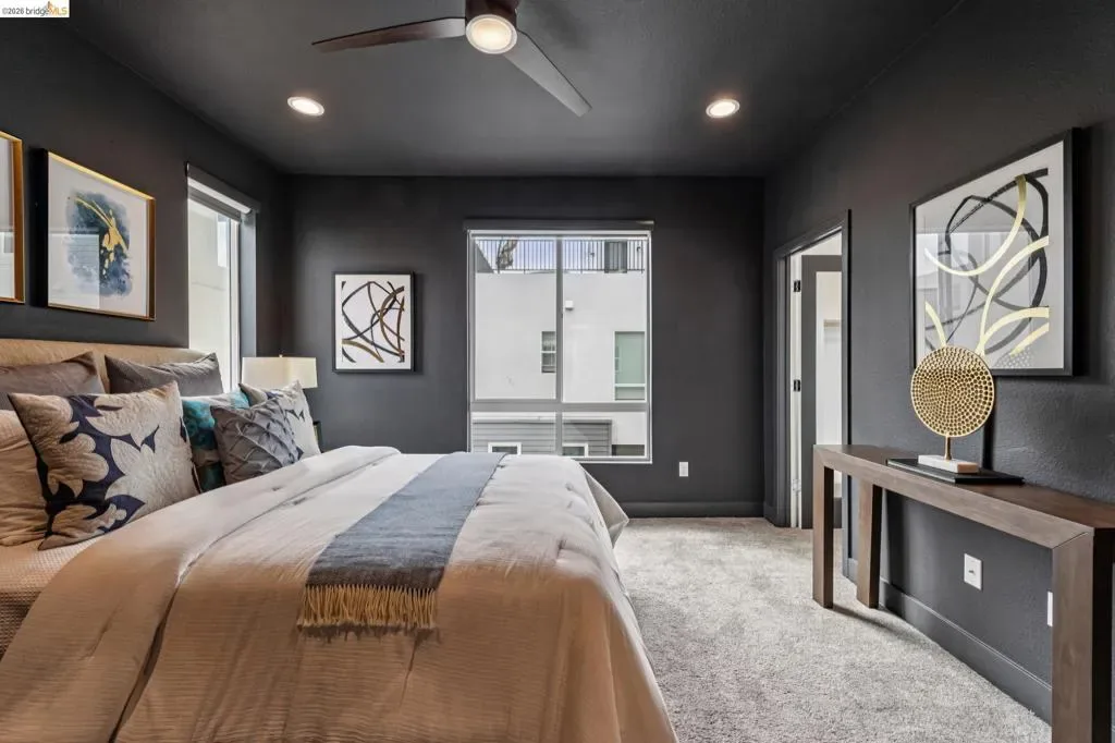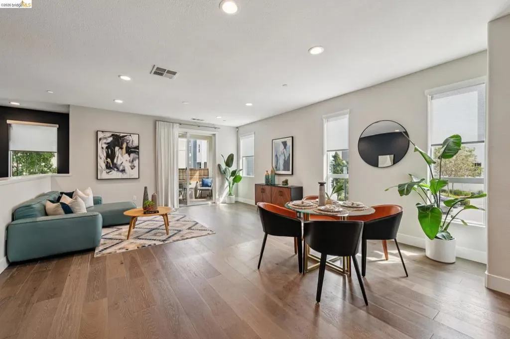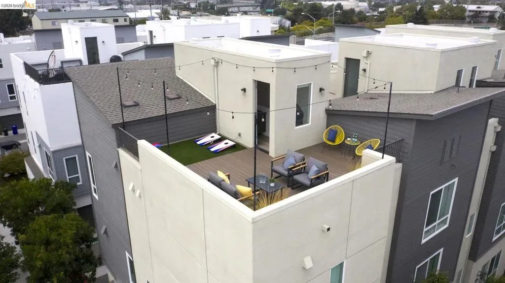 Modern 3BD/4BA end-unit townhome in Marina Bay’s desirable NOMA community. Built in 2018, this light-filled, multi-level home offers 1,739± sq ft of open-concept living with $75K in upgrades, including automated blinds, Café appliances, Monogram fridge, and a premium security system. Spacious living room flows into a sleek kitchen—perfect for entertaining. Enjoy a private rooftop deck with partial Bay views, ideal for outdoor dining or relaxing sunsets. The 2-car garage features epoxy floors and custom built-ins. Prime location near Bay Trail, parks, and Richmond Ferry, with easy access to Oakland, Berkeley, and San Francisco.