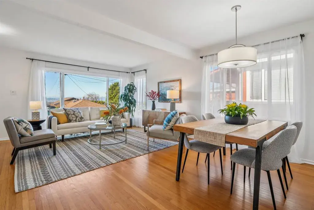 Beautifully updated and full of Mid-century charm, this 3BR 1-BA home captures sweeping views of North Bay, Marin, and Mt. Tamalpais. The living and dining rooms frame spectacular sunsets, while the inviting rear patio is perfect for dining and relaxing. The deep, expansive backyard—complete with an above-ground pool—offers endless potential for gardening, play, relaxing, and entertaining. Thoughtful upgrades include refreshed paint, hardwood floors, quartz countertops, stainless steel sink, gas range, dual-pane windows, newer exterior doors and light fixtures, updated bathroom, central heating, interior access to the attached garage, and transferable alarm. This exceptional property also features a sewer compliance certificate and low pest report—making it truly move-in ready.