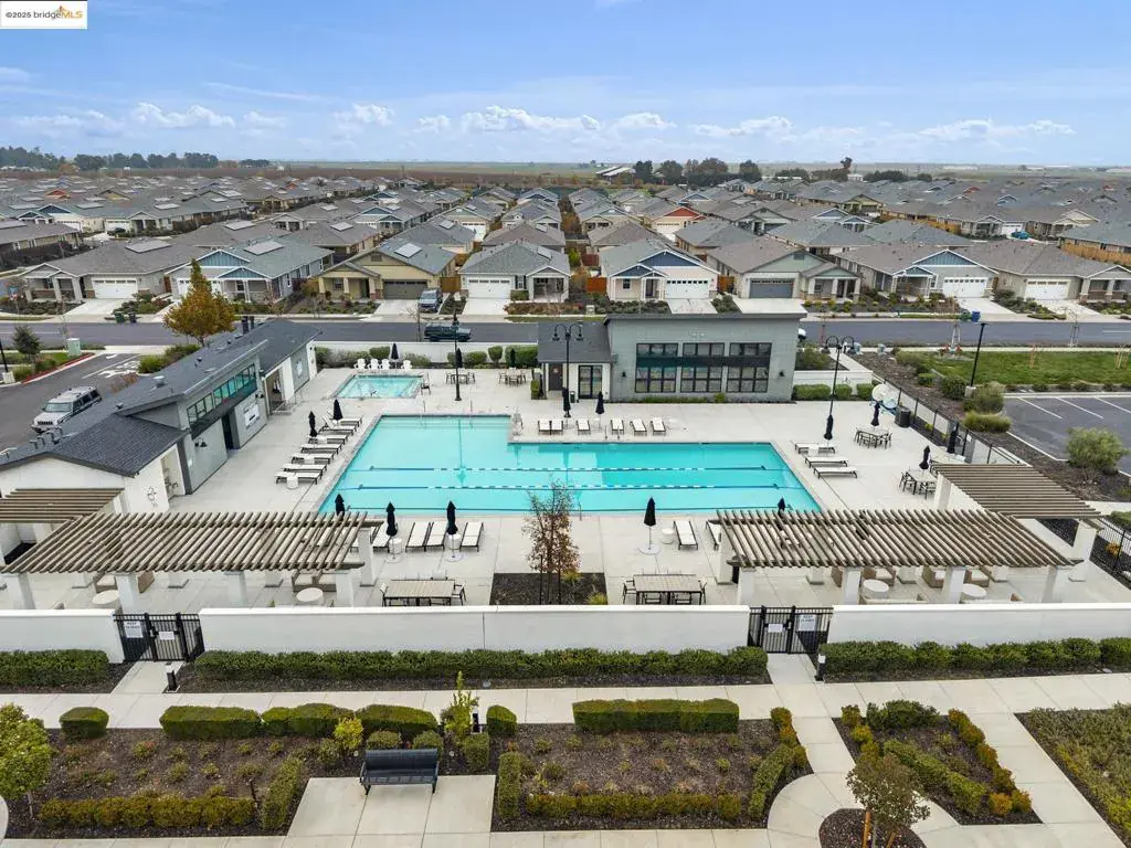 Welcome to this beautiful 2-bedroom, 2-bath home in the desirable Summit at Liberty 55+ Community, offering 1,302 sq. ft. of bright, open living space. The kitchen boasts sleek quartz countertops, a clean artic- white tile backsplash, recessed lighting, and plenty of cabinetry for storage. Stainless steel LG appliances—including a side-by-side refrigerator, microwave, dishwasher, and range—add style and convenience. Tile flooring enhances both bathrooms and the laundry room, while carpet adds comfort in the bedrooms. Additional features include recessed lighting in the living room, window shades, an LG washer and dryer, a tankless water heater, finished garage walls, tile roof, and leased solar for energy efficiency. The low-maintenance backyard offers a peaceful retreat, complete with a dedicated dog run. Summit at Liberty’s amenities include a Community Clubhouse, tennis courts, pool, spa, and fitness room. Don’t miss the chance to make this home yours!