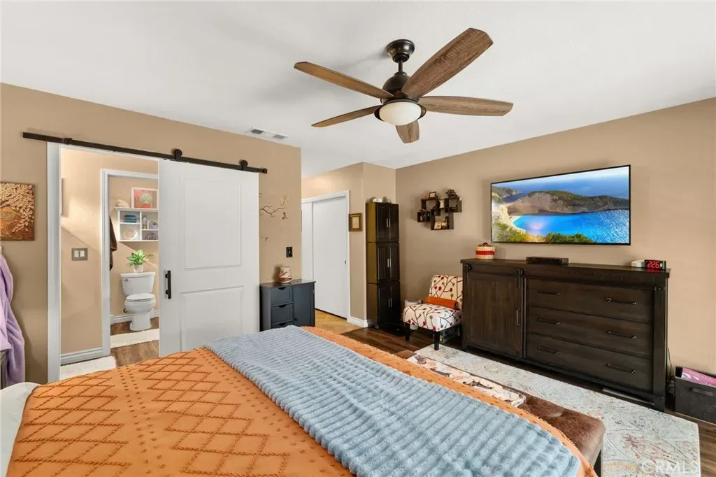 The primary suite boasts a spa-like master bathroom highlighted by a massive walk-in shower with dramatic book-matched stone slabs and a rainfall showerhead. Relax by the living room fireplace or head upstairs to the 4th bedroom and expansive loft, the perfect “flex space” for a home office or media room. Beautiful new flooring flows to the private covered patio, ideal for year-round entertaining. This turnkey gem offers sophisticated design and an open-concept layout in a prime 92505 location. Move-in ready—schedule your tour today!