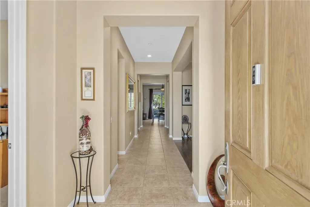 Discover the charm of Rancho Valencia, a distinctive gated community nestled among citrus and avocado groves. The neighborhood stands out for its unique design, with homes separated by citrus groves that wind throughout the community, creating a tranquil and picturesque setting. All homes in Rancho Valencia are remarkable, and this single-story residence is no exception. You are greeted by a newly painted exterior, setting an inviting tone from the moment of arrival. Inside, the home boasts four spacious bedrooms and three and a half bathrooms, complemented by an additional room that can serve as a library or home office. The property is designed for comfort and privacy, offering three separate living areas where individuals can enjoy their own private space. A full guest suite is situated on the east side of the entry, complete with an ensuite bathroom—an ideal solution for multi-generational living with grandparents or adult children. On the west side of the entry, an office and two more bedrooms share a hall bath, providing flexible options for family or guests. The primary suite is roomy and opens to the back patio. The updated primary bath features a Roman tub, open shower, and a well-lit dual sink vanity. High ceilings and an open-concept layout in the living areas create a spacious, inviting atmosphere, perfect for gatherings and relaxation. The updated kitchen features granite countertops and dual sinks, catering to both culinary enthusiasts and busy households. For year-round comfort, the home is equipped with a newly installed 16 SEER HVAC system. The backyard, situated alongside the neighborhood groves, features covered sections, well-designed pathways, a built-in BBQ island, and an elevated platform suitable for a spa or seating area. The groves themselves are managed by the HOA, and all homeowners have the privilege to pick fruit from any of the community’s trees. Residents appreciate a peaceful neighborhood atmosphere, with convenient access to nearby shops and award-winning schools. Additional amenities include gated RV parking that can accommodate vehicles up to 35 feet. Experience all that this lovely property in Rancho Valencia has to offer—schedule a visit today.