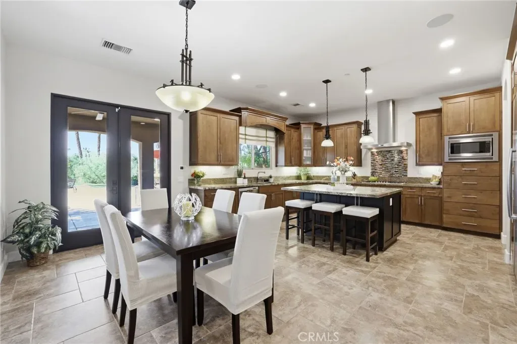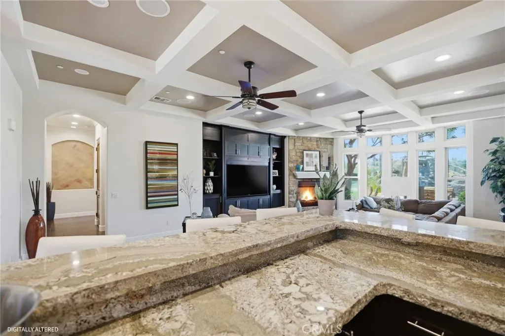 into the kitchen and a built-in bar with three-sided seating and a climate-