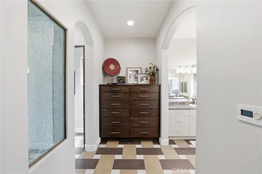 offers new carpet, marble shower and countertops, dual vanities, a large soaking