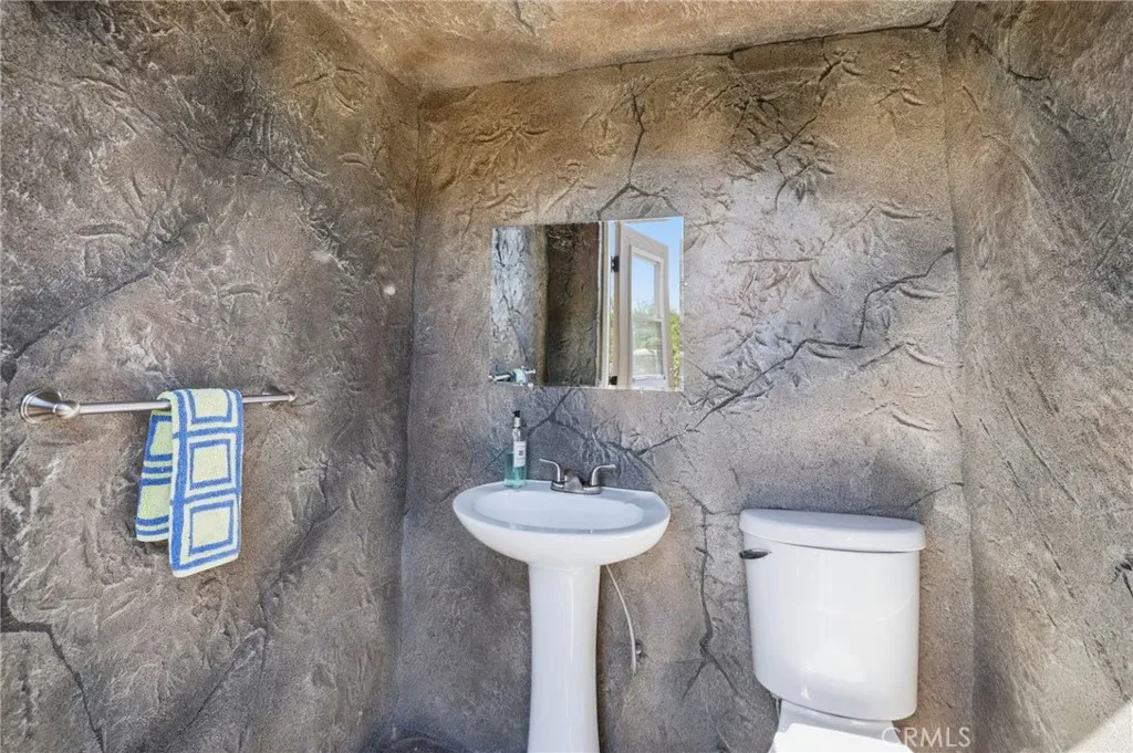 and spa with waterfall and slide, plus a convenient half bath built into the rock