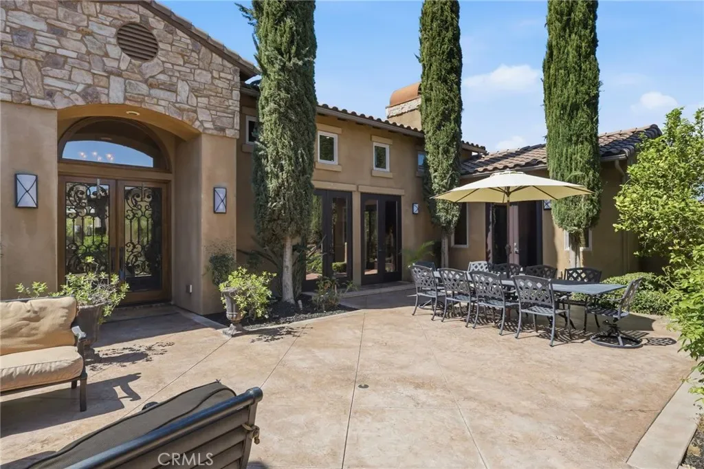 the home’s three fireplaces, creating a welcoming outdoor gathering space.