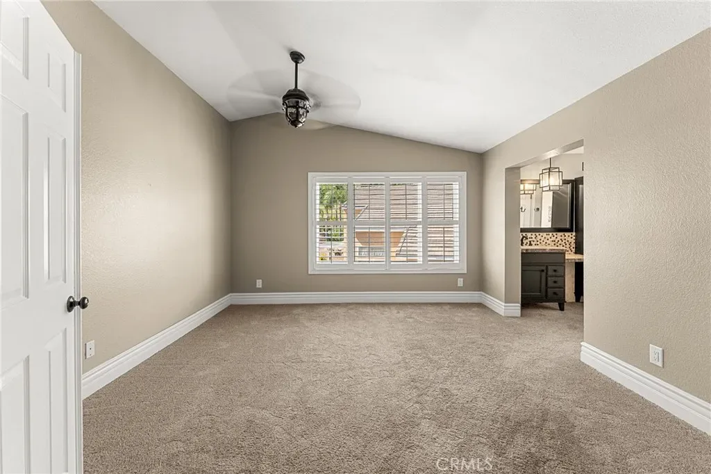 All three bathrooms have been upgraded, including a fully remodeled primary bathroom with updated finishes. Additional interior highlights include matching plantation shutters throughout the home, upgraded premium lighting fixtures, and ceiling fans, adding both style and comfort throughout the space. The home also includes paid solar, helping improve long-term energy efficiency.