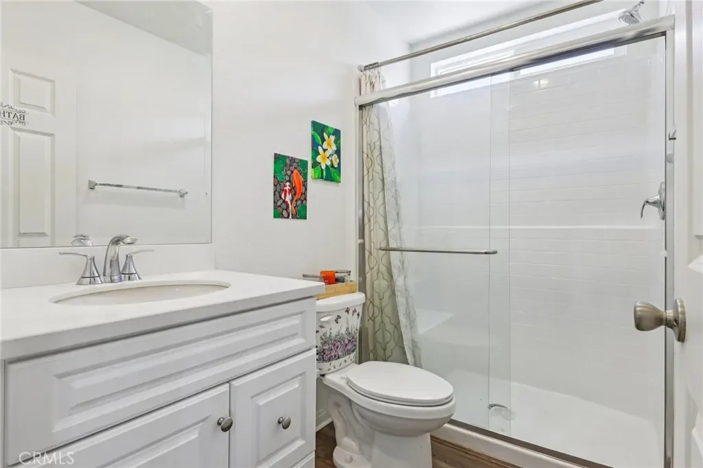 Welcome to this bright and spacious home located in the desirable Obsidian community, offering a thoughtfully designed layout and inviting indoor-outdoor living. The main level features a convenient bedroom and full bathroom with a walk-in shower—ideal for guests or multigenerational living. The open-concept living, dining, and kitchen areas are filled with natural light, creating a warm and welcoming atmosphere. The spacious kitchen showcases fresh white cabinetry, granite countertops, stainless steel appliances, a center island, and ample storage for all your needs. Stylish LVP flooring runs throughout the downstairs, adding both durability and modern appeal. A sliding glass door from the dining area provides easy access to the backyard. Go outside to a generously sized yard with a large patio and garden space, perfect for outdoor entertaining, relaxing, or cultivating your own garden. Upstairs, a versatile loft offers additional living space for a home office, media room, or play area. The primary suite features lovely views, a walk-in closet, and an en-suite bathroom with a dual-sink vanity. Two additional bedrooms share a full bathroom, and a convenient upstairs laundry room completes the second level. Additional upgrades include a whole-house water filtration system and leased solar panels for improved efficiency and comfort. Residents of Obsidian enjoy beautifully maintained grounds with BBQ areas, outdoor picnic spaces, walking paths, a playground, and a dog park—providing a wonderful community lifestyle to call home.