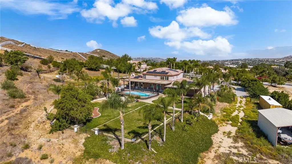 SPECTACULAR 4 ACRE Equestrian Mini-Estate POOL HOME in the Highly Desirable Mockingbird Canyon Community with Endless VIEWS of the Valley, City Lights & Surrounding Hills!! ATTENTION ALL OWNER-OPERATORS, DESERT ENTHUSIASTS and HORSE LOVERS…Plenty of Room for your Trucks, RVs, Boats, Trailers, Horses and More * * OVER $200K in Improvements * * Situated at the END of the CULDESAC and NO MELLO ROOS, NO HOA Fees & LOW LOW Taxes * * EXPANSIVE Floor-Plan offering 3919sqft w/4 LARGE Bedrooms, Bonus Room, Separate OFFICE and 4 Bathrooms * * This Model has a MAIN FLOOR Bedroom with it’s OWN Private Bathroom * * Beautifully REMODELED Chefs Quality Kitchen with GRANITE SLAB Counters & Back-Splash, French Antique White Cabinetry, STAINLESS STEEL Appliances, Breakfast Counter for the Kids & Walk-In Pantry * * Formal Living Room & Formal Dining Rooms with SOARING 25ft High Volume Cathedral Ceilings * * UPGRADED Throughout w/REMODELED Bathrooms & Kitchen, Travertine Flooring & Baseboards, DESIGNER Fixtures, Wrought Iron Staircase, Crown Molding, Custom Interior Paint, Recessed Lighting, Custom Front Entry Door, Raised Panel Doors, GATED ENTRY, Fountain, Solar Panels and MUCH MUCH MORE * * Backyard is PERFECT TO ENTERTAIN with Sparkling Saltwater In-Ground Pool (with Safety Fence), FULL-LENGTH Aluma-Wood Covered Patio w/Ceiling Fans, Fenced Yard with Lots of GRASS for the Kids to Play, Fire-Pit, Mature Palm Trees & OVER 35 Fruit Trees and PLENTY of ROOM for your Horses & Animals….This could be the PERFECT Lot for the Owner/Operator with an OVER-SIZED 3 Car Garage w/Outdoor Covered Parking, Multiple Tuff Sheds, Steel RV/Boat Covered Parking, 40ft Container and GATED Access with Room for your RV, Boat, Trailers, Trucks & More * * SPACIOUS Master Bedroom Suite w/Romantic Dual Sided Fireplace, Large Walk-In Closet & Separate Retreat – AND – Master Bathroom w/His & Her Sinks, Oval Garden Tub & Custom Tiled Walk-In Shower * * Great Floor-Plan with Large Bedrooms offers Everyone PLENTY of SPACE * * Situated on a PREMIUM 4 ACRE Lot with your own PRIVATE Gated Entry at the End of a Culdesac * * Close to Schools, Shopping, Restaurants/Dining & EZ Freeway Access * * LOW TAXES and NO HOA * * Terrific Home that will CHECK all of Your Boxes!!