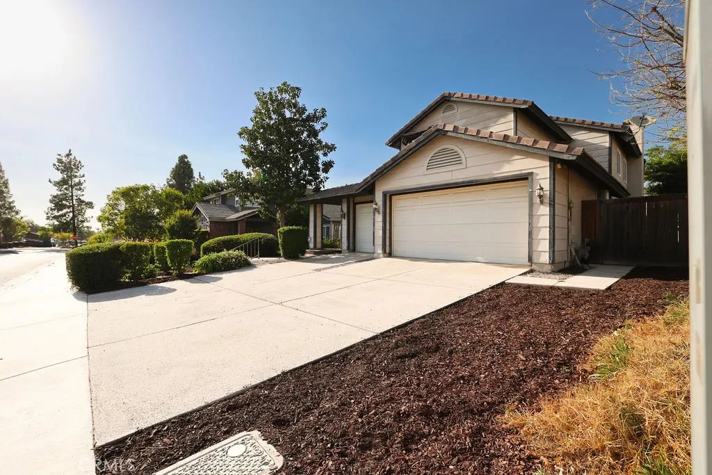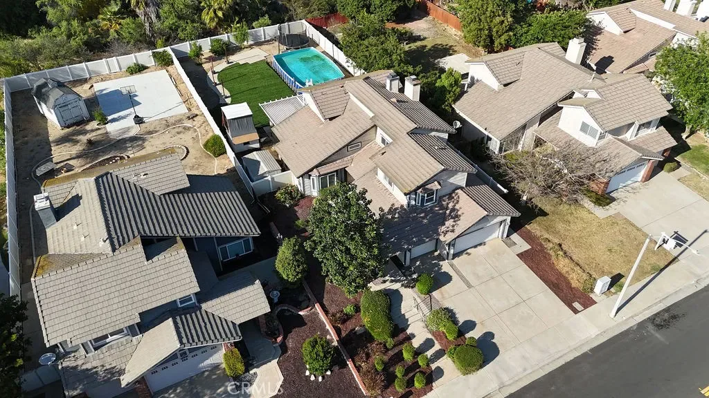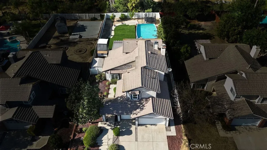 Welcome home to this beautiful 5-bedroom, 3-bath home in Riverside’s sought-after Orangecrest community! From the moment you arrive, you’ll appreciate the easy-maintenance landscaped front yard and inviting double-door entry. Step inside to soaring ceilings, a grand staircase, and an abundance of natural light that fills the home, enhanced by plantation shutters throughout. The living room features a charming bay window and flows seamlessly into the formal dining room with sliding doors leading to the backyard. The kitchen is perfectly situated at the back of the home, where you can enjoy backyard views from the sink, cook on your gas range, and gather with family around the spacious kitchen island. A cozy breakfast nook connects the kitchen to the family room, complete with a warm fireplace perfect for everyday living and entertaining. Downstairs, you’ll find a bedroom and full bathroom, ideal for guests or multigenerational living. Upstairs, the expansive primary suite offers a private retreat with its own fireplace and an ensuite featuring dual sinks, a soaking tub, walk-in shower, and walk-in closet. There are three additional bedrooms with the last two sharing a jack-and-jill bathroom. Step outside to your oversized backyard designed for both relaxation and entertaining. Enjoy evenings under the impressive 60×30 Alumawood patio cover, complete with market lighting and ceiling fans for year-round comfort. The backyard also features new sod, a trampoline, above-ground pool, playhouse, lemon and plum trees, and a secure side yard for pets or storage. Additional upgrades include interior paint, a new water heater (2021) and a new two-stage HVAC system (2021) for improved energy efficiency and comfort. The two-car garage has been converted into a studio, offering flexible space for a home office, gym, or creative use. The single car garage has a workbench and storage. Conveniently located within walking distance to the elementary school and a park with newly upgraded, state-of-the-art playground equipment, and just minutes from shopping, dining, entertainment, and freeway access. With no HOA and low property taxes, this home truly has it all—don’t miss your chance to see it today!