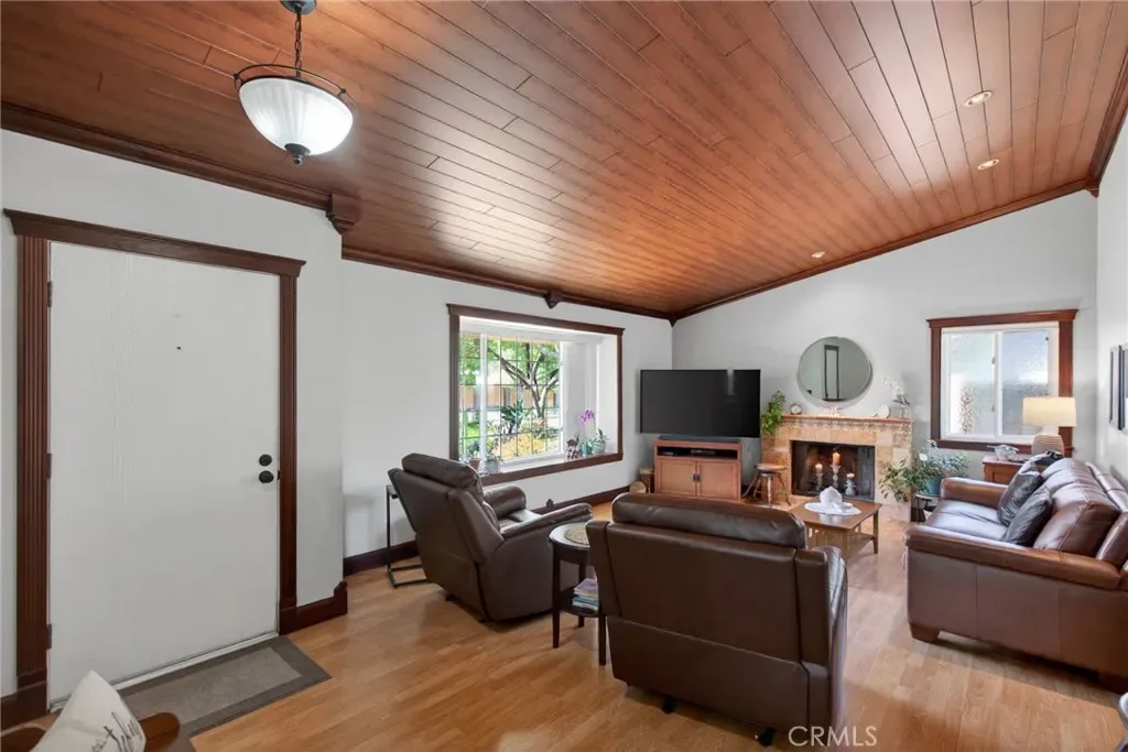 Welcome to Your Beautiful Riverside Home. This exquisite home has been loved and maintained by the same owners for the last 30 plus years. Upon arrival the meticulously maintained front garden will set the stage for the rest of the home. Enter and take in the beautiful wood plank ceiling. The living room features a fireplace with tile surround, a deep picture window that gazes out to the lush front yard and wood details along with a Leaded glass transom above the entry leading into the Kitchen area. The kitchen features granite counter tops and an abundance of cabinets, including a breakfast counter that opens towards the dining area, that can also be used as a family room. The first of the 4 bedrooms is currently being utilized as an office and has beautiful double glass entry doors. The other 2 extra bedrooms are good sizes and centrally located to share the updated 2nd full bathroom that has a sink that rivals most art pieces, an updated vanity and white subway tile that extends up to the ceiling. The Primary suite is at the rear of the home offering privacy and has a sliding door to access your beautiful back yard. The Primary suite bathroom has been updated and features a walk-in shower with tile walls that extend to the ceiling along with an updated vanity and another beautiful sink. The rear yard is a private sanctuary offering a large, covered patio, lush landscaping with character and charm built into the well thought out design. The home has updated dual pane windows, HVAC system and so much more. The garage has a workshop area that was built and designed to be an additional bonus room if needed. Centrally located near shopping, dining, schools and not too far to the Metro station for those that are commuting. This one is a Must see, it is rare to find such a well-maintained home.