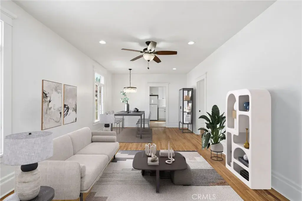Welcome to this charming downtown Riverside home. A gorgeously remodeled Craftsman from the early 1900’s. A 2 bedroom, 1 bathroom home with timeless charm, nestled right in the middle of downtown Riverside. Each space thoughtfully remodeled to keep the classic historic elements, mixed with modern updates throughout. Walk into the open living space with original hardwood floors and oversized baseboards. Featuring recessed lighting and a bright open layout. Two spacious bedrooms with closet space and traditional trim on all the doors and windows. The kitchen has been beautifully remodeled with extra kitchen storage. Brand new cabinets with soft close doors and stylish countertops. The newly remodeled bathroom with matching countertops and a charming vanity. Extra shelves for bathroom storage. Indoor laundry with a vintage laundry room deep sink. Outside you will find a charming front yard featuring solar lighting in the planters. A large spacious front porch perfect for relaxing So Cal nights. The backyard is spacious and full of possibilities. A rare feature for the area, a large 2 car garage with both water and electric ran to the garage. Electric car charging station. Double gates with access to the ally. There is plenty of room to park a boat or RV. ADU potential with the large garage space. This home has it all! You don’t want to miss this one! Welcome home! *Living room digitally staged in photo