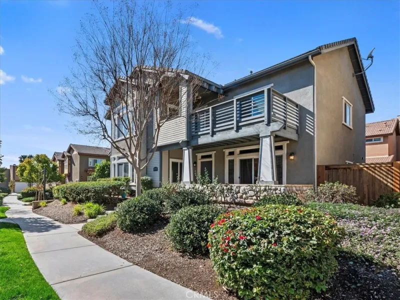 Upstairs, the primary suite is a true retreat, boasting double walk-in closets, a private balcony, and an en-suite bath with a separate soaking tub and shower enclosure. An inside laundry room adds to the home’s convenience. Enjoy access to the community amenities, including a pool, spa, playground, and park area. Conveniently located near shopping, dining, and easy freeway access, this home is a must-see.