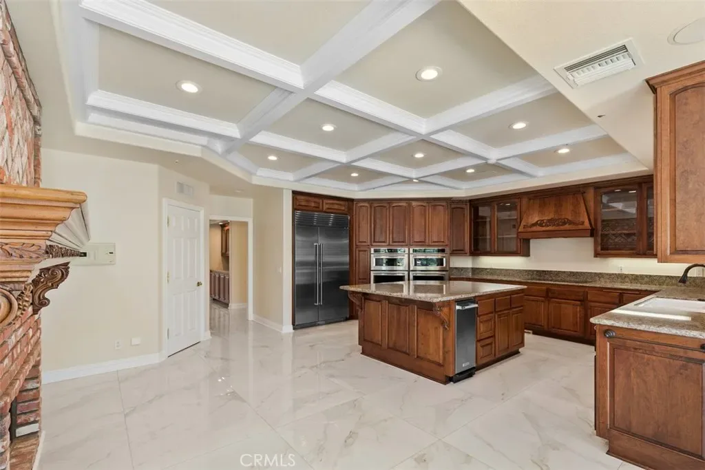 The chef’s dream kitchen is beautifully appointed with Sub-Zero refrigerator/freezer, double ovens, double microwaves, double dishwashers, warming drawer, induction cooktop, trash compactor, and additional Sub-Zero freezer drawers built into the oversized island. The kitchen also features a walk-in pantry, breakfast area, and fireplace, making it the true heart of the home. A stunning butler’s pantry connects the kitchen and dining room and includes floor-to-ceiling illuminated display cabinetry and extensive built-in storage.