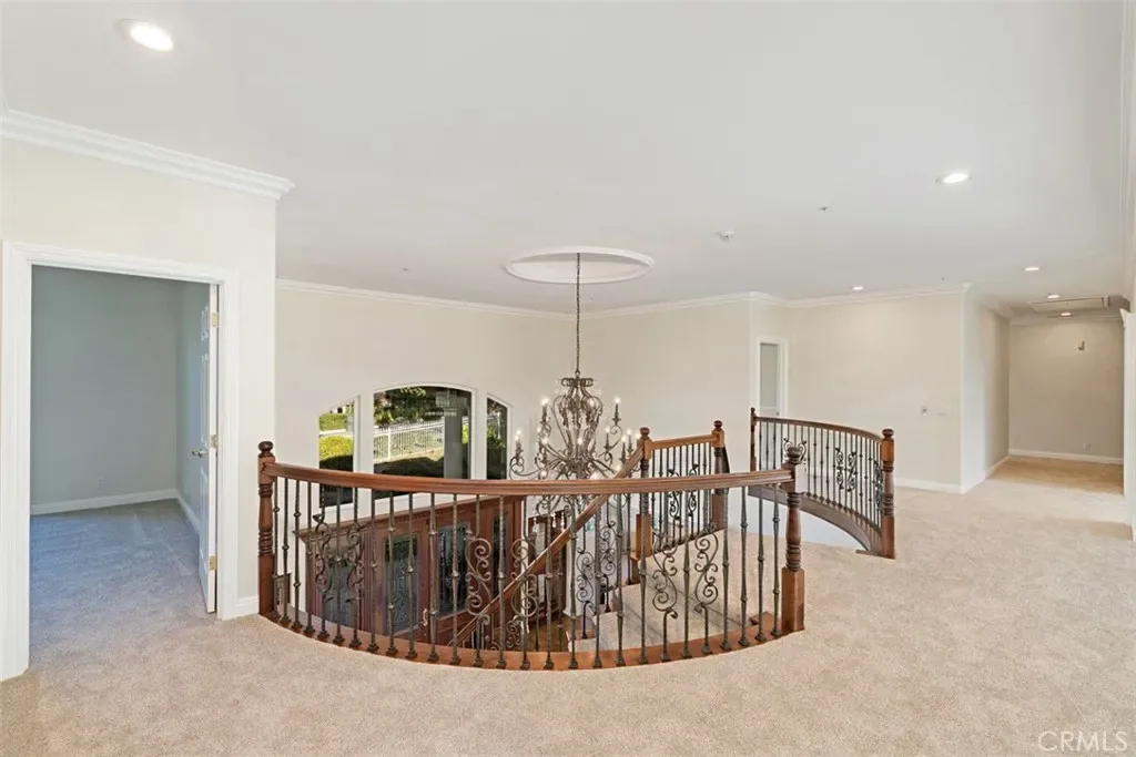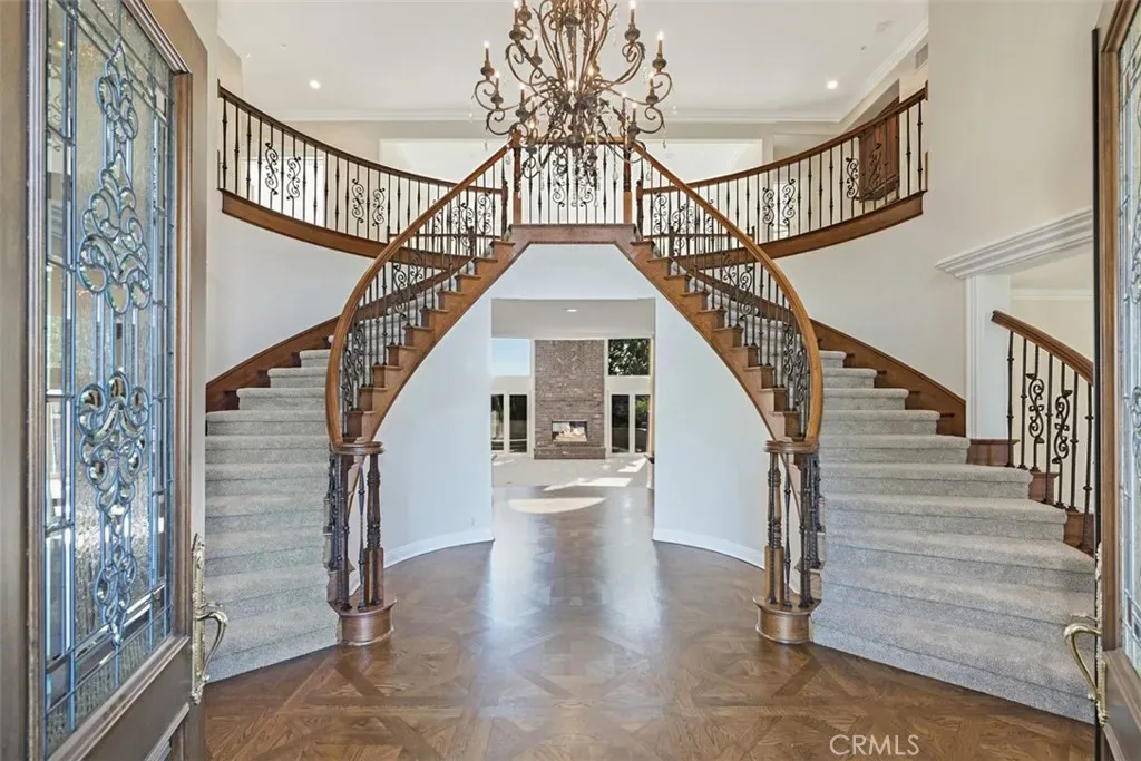 Welcome to this recently remodeled custom luxury estate offering 6 bedrooms and 6.5 bathrooms on a private one-acre view lot. From the moment you arrive, the home makes a breathtaking impression with a grand double-door entry, dramatic dual curved staircases, a dazzling chandelier, and soaring ~20-foot ceilings.