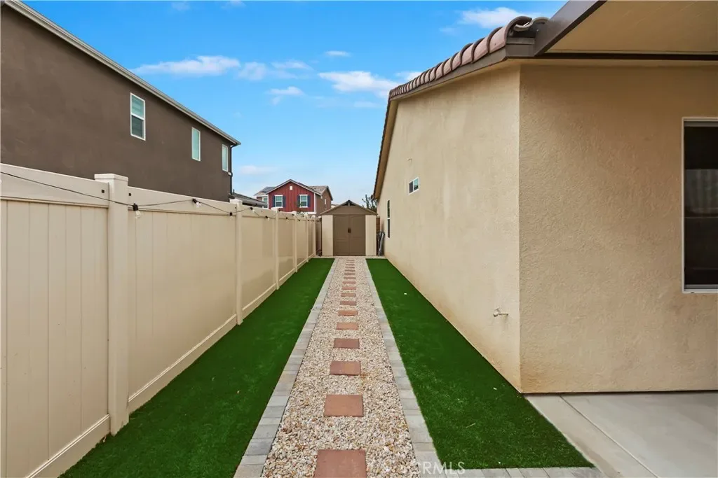 Step outside to a fully landscaped front yard designed with drought-tolerant materials and equipped with an automatic drip irrigation system, providing both beauty and efficiency. The front yard driveway has also been cement-extended for more parking space. The backyard has been fully landscaped with brand new cement flooring, brand new covered patio, fans, lights, grass-like landscaping, stone, plants and so much more! Both side yards have been fully hard-scaped with a built-in walk ways with pavers and gravel. On one side, enjoy a new shed for all of your landscaping tools.