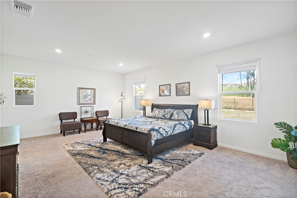 Single Level House with Views! No HOA. Rare single-level home with no rear neighbors, offering unobstructed, breathtaking mountain views and exceptional privacy. This thoughtfully designed property includes a builder-constructed junior suite with a private entrance—ideal for multi-generational living or rental income while occupying the main residence. A bonus office/den offers exceptional flexibility and can be used as a 6th bedroom, home office, or entertainment room. Upgrades include tile flooring throughout the living areas, concrete side yard and backyard, and a sound-insulated wall between the main home and junior suite for added privacy. Built with energy efficiency in mind, the home features solar panels that significantly reduce electricity costs. Buyer to assume solar lease at $130.14/month. A truly versatile and desirable home—perfect for comfortable living and smart investment. Don’t miss this opportunity.