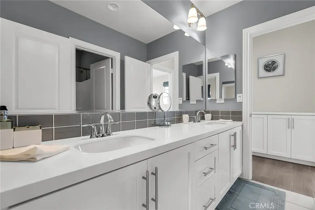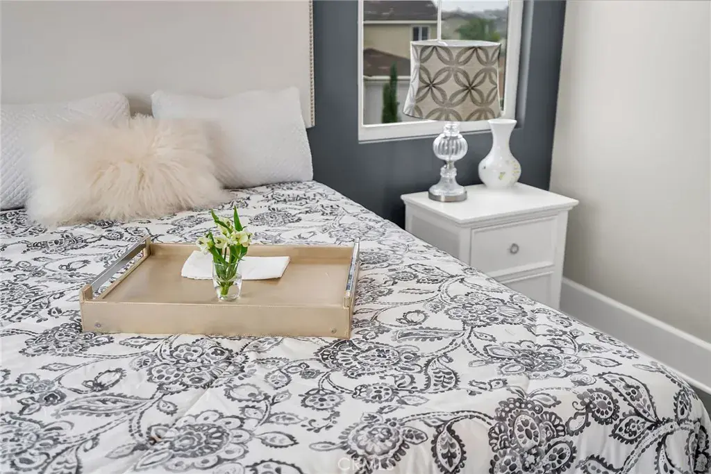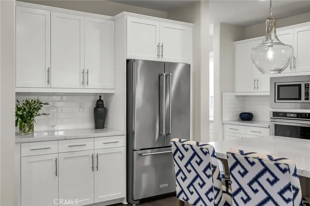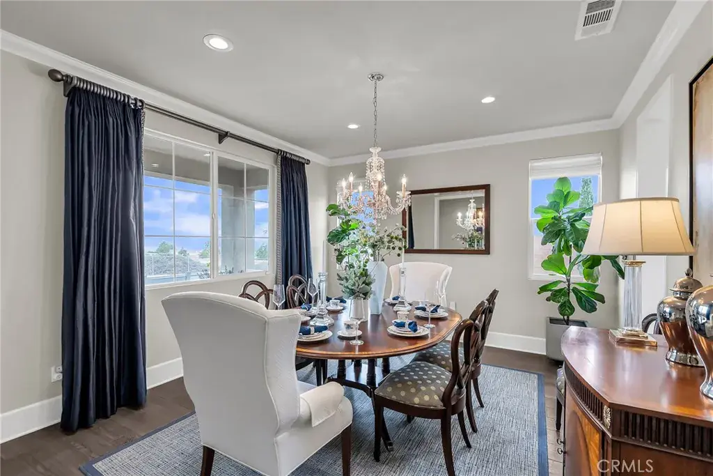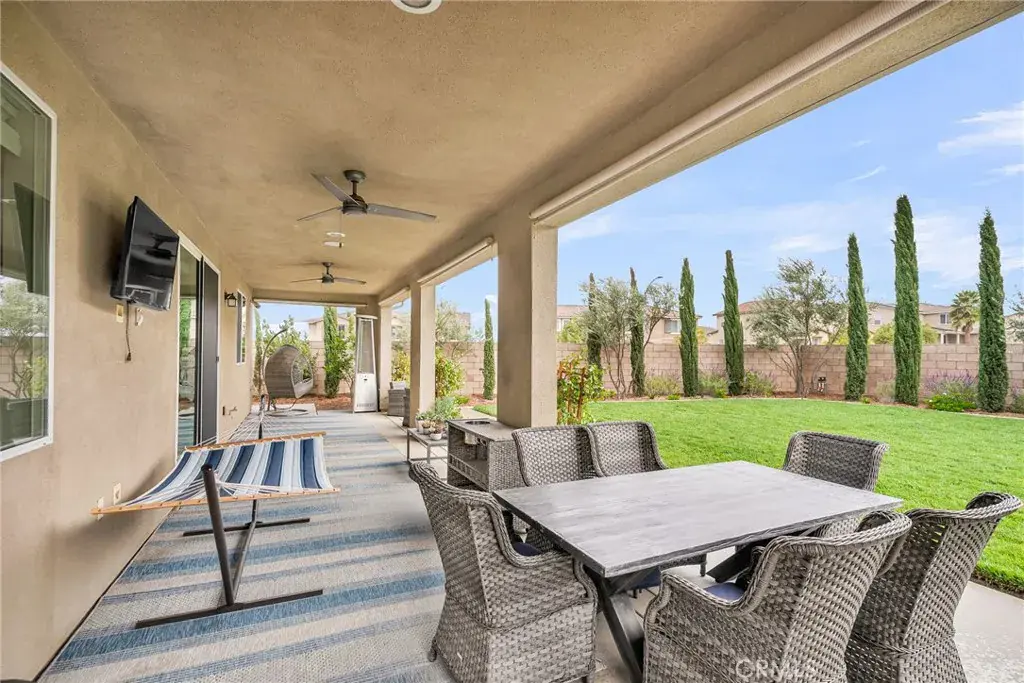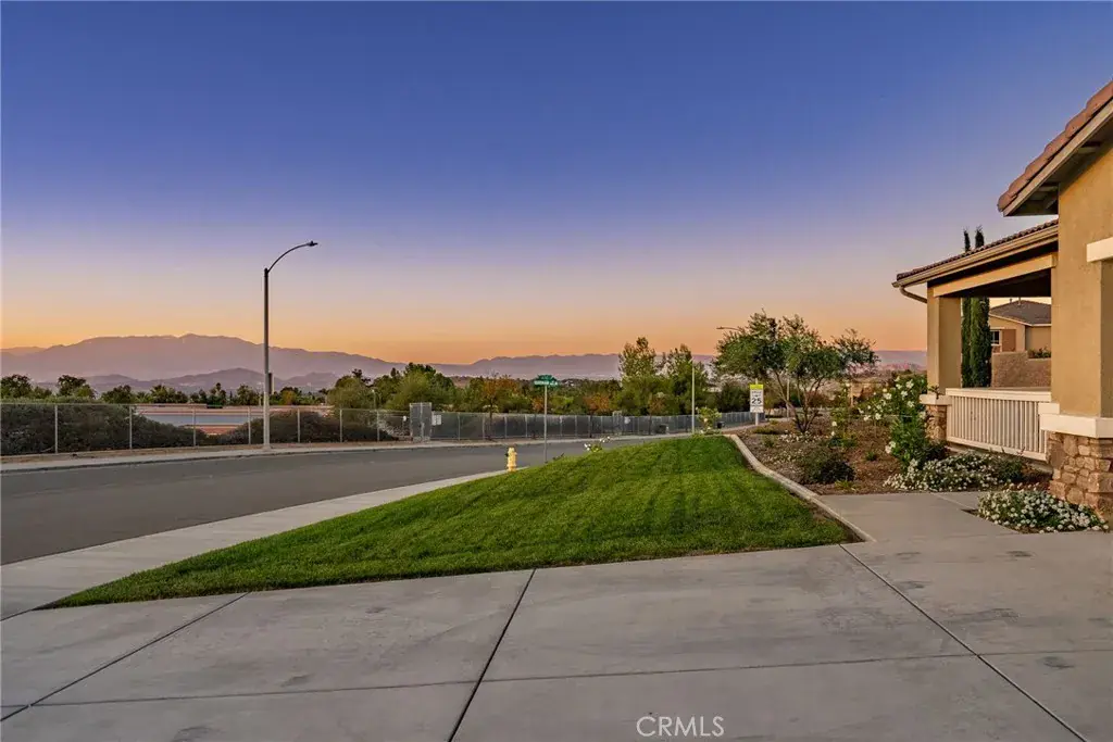 Nestled in the highly sought-after Orangecrest neighborhood, this exceptional residence seamlessly blends timeless elegance with modern sophistication. Every detail has been meticulously curated to create a serene sanctuary of style and comfort. A charming front porch welcomes you with grace, offering the perfect spot to unwind as the sun sets in a cascade of golden hues. Step inside to discover gorgeous hardwood flooring, impressive high ceilings, and exquisite crown molding and baseboards that set the tone for refined living. The heart of the home is an expansive open-concept kitchen and living area, ideal for contemporary lifestyles. The chef’s kitchen boasts striking quartz countertops, premium KitchenAid appliances, abundant upgraded cabinetry, a farmhouse sink, walk-in pantry, and a generous center island illuminated by pendant lighting. The adjoining dining and living spaces are bathed in natural light, creating a relaxed yet sophisticated ambiance. The formal dining room and adjacent butler’s pantry elevate your entertaining experience. A first-floor en-suite bedroom offers versatility for guests or multi-generational living. Upstairs, a cozy loft with a built-in desk provides a peaceful retreat, while three spacious secondary bedrooms—one with its own en-suite bath—ensure comfort and privacy. The palatial primary suite is a true haven, featuring a spa-inspired bathroom with a standalone soaking tub, luxurious shower, dual vanities, marble flooring, and a custom walk-in closet with built-in organizers. The sweeping, pool-sized backyard presents endless possibilities for leisure. An extended California room offers seamless indoor-outdoor living, ideal for al fresco dining or unwinding amidst mature landscaping that includes a lush lawn, stately cypress trees, and a variety of fruit and olive trees. Additional highlights include custom window treatments, designer lighting, an upstairs laundry room with sink and cabinetry, a security system, block and vinyl fencing, and a spacious three-car garage. Throughout the home, premium finishes and thoughtful design choices create a harmonious layout ideal for both everyday living and stylish entertaining.