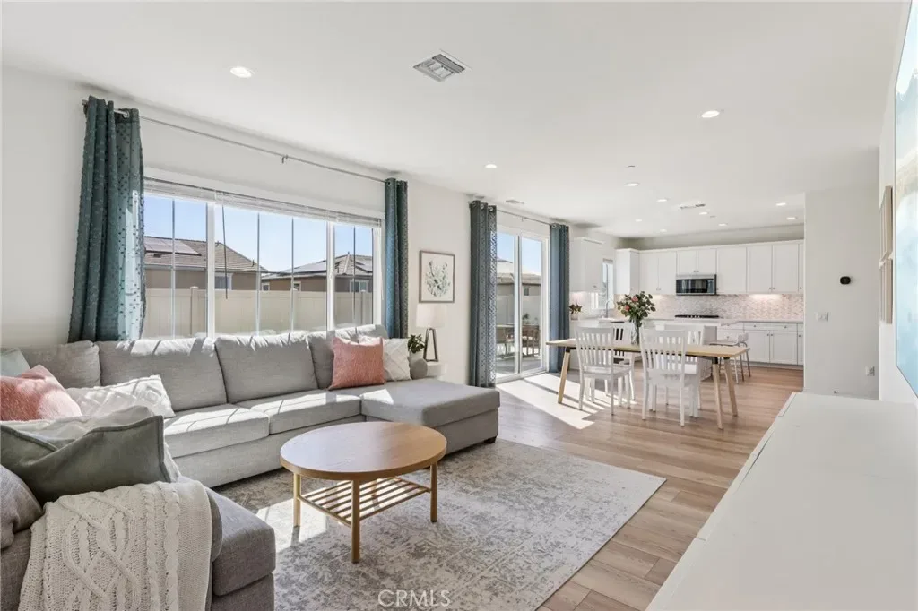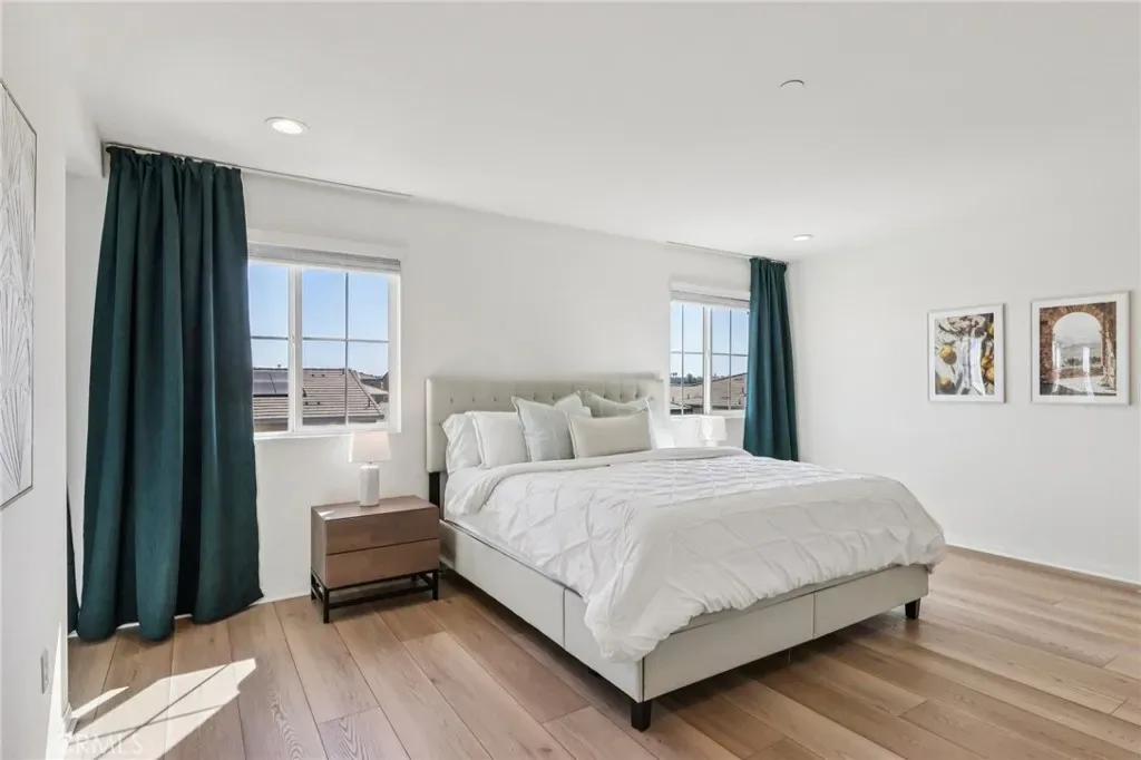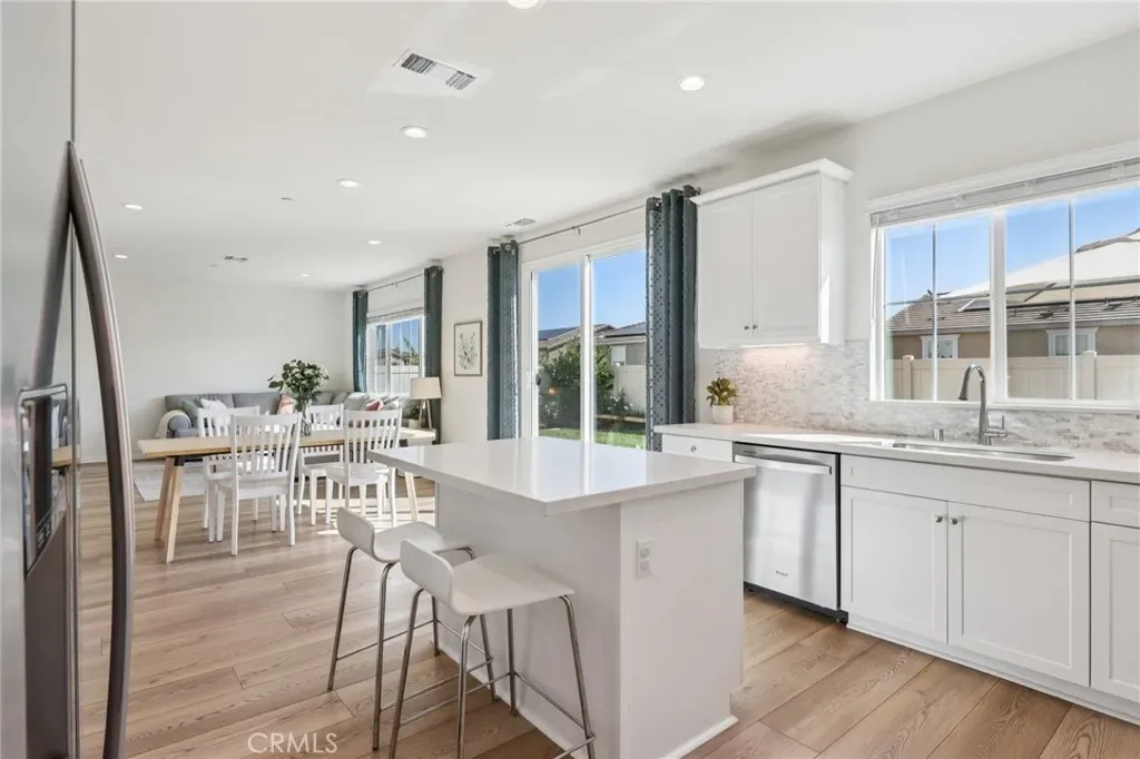 Discover elevated living in this stunning, newly built 4-bedroom, 3-bathroom single-family residence located in the highly desirable Madeira community. Perfectly situated on a premium lot facing the park and tucked along a semi-private street, this exceptional home offers a rare combination of privacy, views, and modern comfort. Thoughtfully designed with both style and functionality in mind, this home features a modern open-concept layout ideal for today’s lifestyle. Step inside to find luxury vinyl plank flooring and expansive windows that fill the home with natural light, creating a bright and welcoming atmosphere. The chef-inspired kitchen serves as the heart of the home, showcasing quartz countertops, sleek white cabinetry, stainless steel appliances, a full-height mosaic tile backsplash, and a large island with bar seating—perfect for both everyday living and entertaining. Designed for seamless indoor-outdoor living, the main living area flows effortlessly to the private backyard, offering ample space for outdoor seating and a BBQ area—perfect for weekend gatherings or relaxing evenings. A convenient main-floor bedroom and full bathroom provide flexibility for guests, extended family, or a home office. Upstairs, a versatile loft with built-in features can easily function as a media room, workspace, or additional living area. The spa-inspired primary suite features a walk-in subway tile shower, dual quartz vanities, and a spacious walk-in closet, offering both luxury and functionality. Two additional bedrooms are well-proportioned and thoughtfully positioned for privacy, sharing an upgraded bathroom complete with a quartz vanity and a large soaking tub—ideal for family or guests. Additional highlights include a spacious upstairs laundry room with a window for natural light and direct access to a two-car garage. The home also features a fully paid-off solar system, offering energy efficiency and long-term cost savings—an increasingly valuable benefit for today’s homeowners. Located within a vibrant community offering parks, recreational amenities, and convenient access to schools, shopping, and major freeways, this home presents an outstanding opportunity for comfortable Southern California living. Don’t miss your chance to own this beautifully upgraded, move-in-ready home—schedule your private tour today!