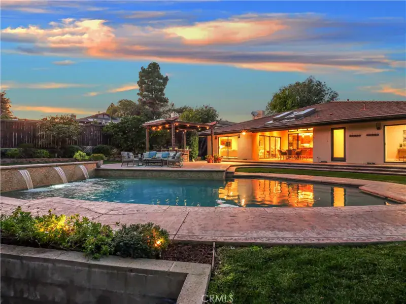 This magnificent home offers seamless indoor-outdoor living, allowing you to enjoy a quintessential Southern California Lifestyle. The kitchen and family room open to multiple large rear yard patio areas, a swimming pool, and a built-in barbecue. Enjoy incredible privacy in your own landscaped backyard on this large property of over three-quarters of an acre. Inside, you’ll find a thoughtfully remodeled kitchen, lots of storage, 3 remodeled bathrooms, 4 bedrooms, and a laundry area. The living room and family room each have a fireplace. There is a large 3-car garage with an electric car charger. To power your home, there are 2 Tesla storage batteries and your own solar panels. There are many fruit trees to enjoy, including orange, lemon, mandarin, loquat, pomegranate, stone fruit, and avocado. The lower yard features a seating and viewing area overlooking the canyon and your own private batting cage, which can also be used for golf practice or converted into a barn for animals. When you own this home, you will live the dream!