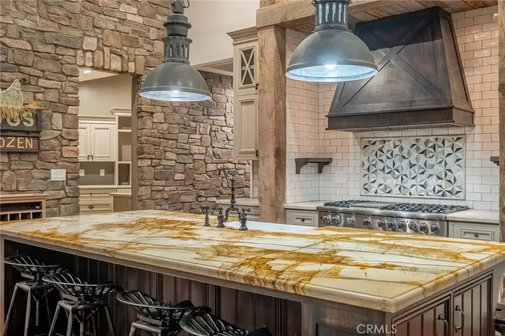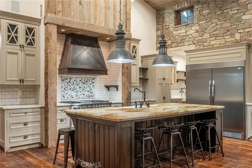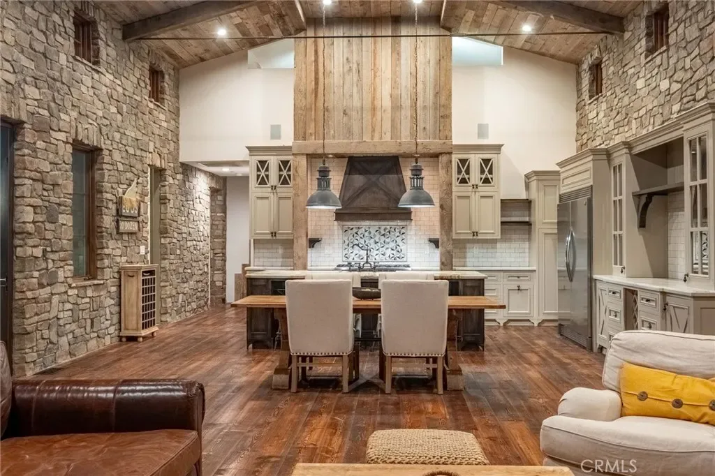 One of a kind, custom built, Solar Powered Stone Farmhouse on vast corner lot in charming Marloma neighborhood. An exterior crafted with extensive Antique Barn Wood and hand set El Dorado Stone creates a warm, soothing and relaxing Vineyard Vibe, while the well thought out design and amenities provides an exhilarating entertaining experience. Three separate structures feels like a movie set as it corrals a large open yard space. The main structure has close to 4000 SF of living space on the main floor with Douglas Fir Circle Sawn Wood Floors from Montana, plus all 4 Bedrooms enjoy Ensuite Full Baths. A Chefs Kitchen with large Zebrano Quartzite Island, Viking Appliance Package, Butlers Pantry, Dual Dishwashers and Large Double Door Refrigerator. The heart of the home boasts one of the best Kitchen & Great Room combinations you’ll ever see with the “all stone” walled Great Room raising roughly a 16′ High Windmill Fanned Ceiling with bi-fold doors that blend into a covered back porch with Fireplace, Outdoor Kitchen, Vegetable Garden and Bocce Court! An additional 1200 SF in the basement quenches many Entertainment moods from a Movie Theatre, Bar, Wine Cellar to a Fitness/Yoga Room! Not included in the Sq Footage is about 150 SF of loft space. Beyond the freshly sodded lawn is a 240 SF detached structure that can be an office or bonus area. Flanked in between those two structures is a huge 3+ car garage w/220V EV outlet, plus an outdoor 3/4 Bath. Conveniently located at the base of the Hill in Rolling Hills Estates close to restaurants, shopping, beaches, parks and easy access to freeways when driving to LAX, Stadiums, DTLA, Amusement Parks, Mountains & Desert! Combine all that with the coveted PVP School District and it becomes very challenging to find a better place to call home.