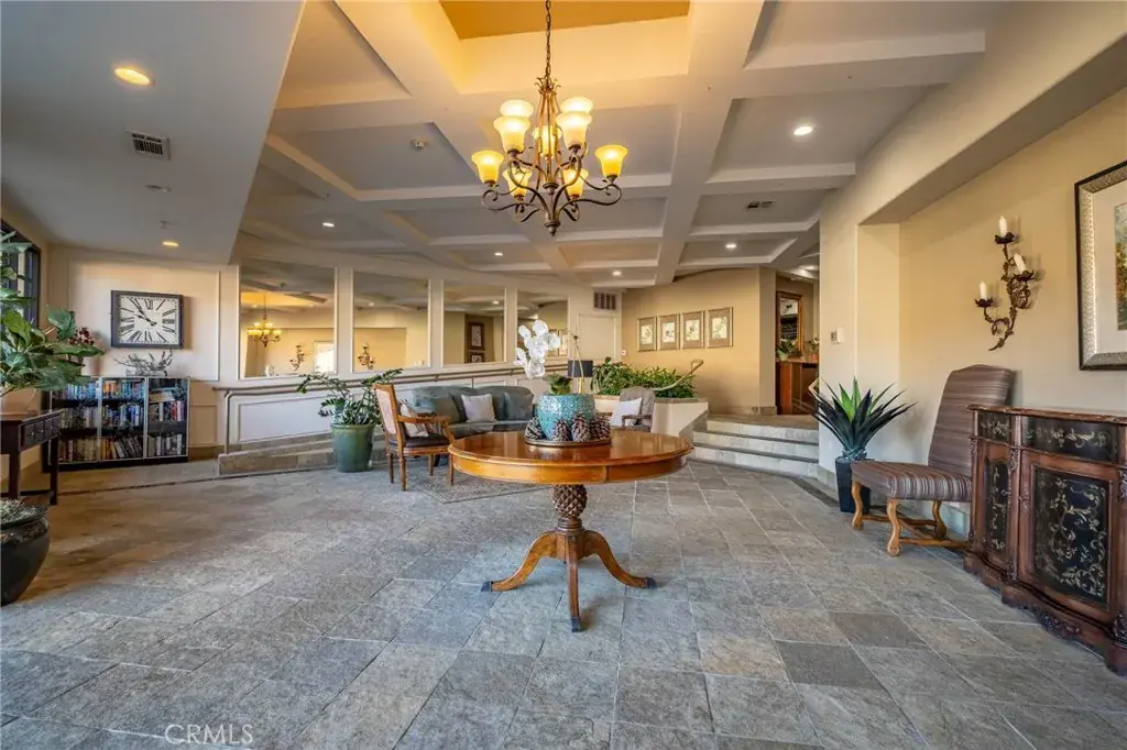 Welcome home to Rolling Hills Villas, a highly sought-after 55+ community located in the heart of Rolling Hills Estates. This beautifully updated two-bedroom condominium offers the perfect blend of timeless charm, modern comfort, and an unbeatable walkable location on the Palos Verdes Peninsula close to restaurants, shoping, gorcery stores, and the library. Light-filled and inviting, the residence features wood floors, arched doorways, crown moldings, plantation shutters, and soaring ceilings that create a warm, elegant atmosphere throughout. The open living and dining areas are anchored by a cozy fireplace and flow seamlessly to a private balcony, ideal for morning coffee, evening relaxation, or enjoying a potted vegetable garden. The kitchen is thoughtfully designed for both everyday living and entertaining, featuring granite countertops, newer stainless steel appliances, ample cabinetry, and a convenient breakfast bar that opens to the main living space with travertine tiles in entry and kitchen. Whether hosting friends or enjoying a quiet meal at home, the layout offers comfort and functionality. The spacious primary suite provides a peaceful retreat with generous closet space and an ensuite bath featuring tile finishes, a wood vanity, and modern fixtures. The second bedroom is equally versatile, perfect for guests, a home office, or hobby room, and is complemented by a full bathroom with a tub/shower combination which could also be perfect for a live-in caregiver down the road. Additional highlights include in-unit stackable washer and dryer, air conditioning, tankless water heater, dual-glazed windows, recessed lighting, and secure gated parking for one car. The building offers elevator access and a beautifully appointed lobby centered around a resort-style atrium with a bubbling fountain. Residents also enjoy a rooftop deck with BBQs, tables, lounge seating, and umbrellas, perfect for entertaining or relaxing. Ideally located just steps from shops, restaurants, grocery stores, pharmacy, medical offices, post office, library, Norris Theatre, Peninsula Center, Promenade PV, and movie theaters. Scenic hiking trails, golf courses, and local parks are just minutes away. A rare opportunity to own a two-bedroom home in the desirable Rolling Hills Villas, offering low-maintenance living, excellent amenities, and one of the Peninsula’s most convenient locations. Ample street parking for a second car or guest. It is even pet friendly! (staging is AI)